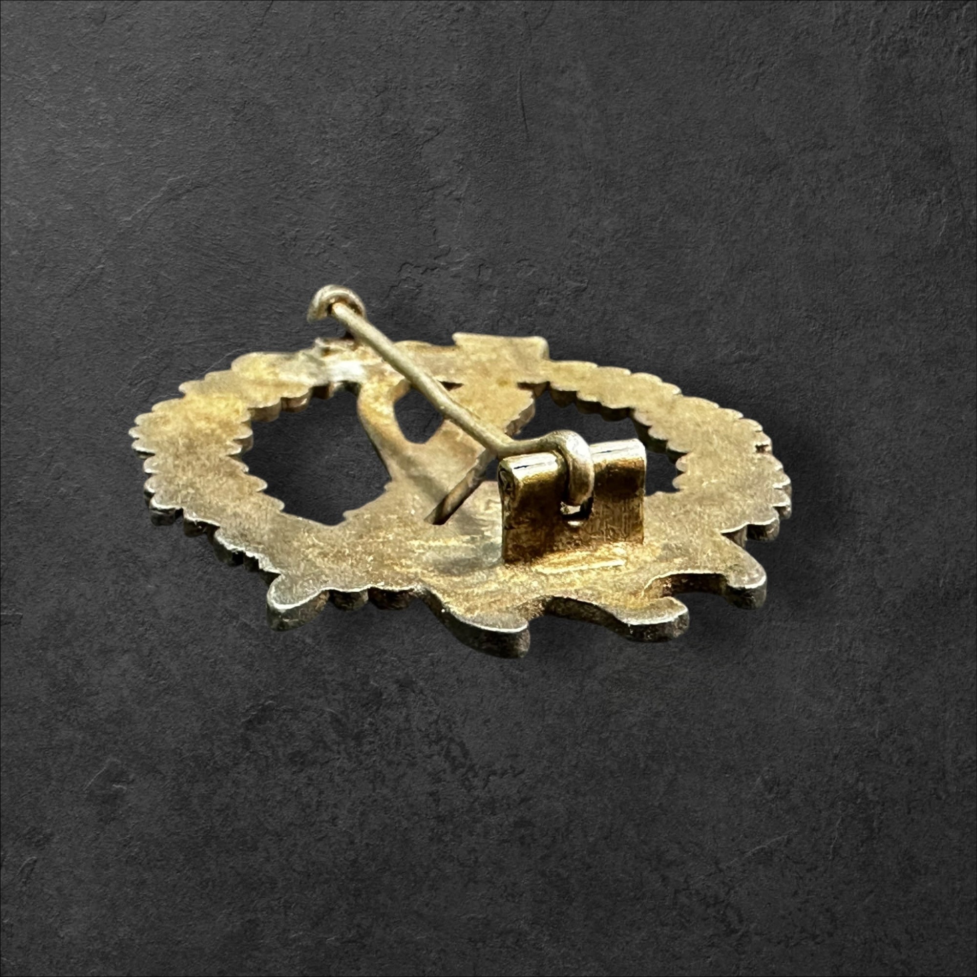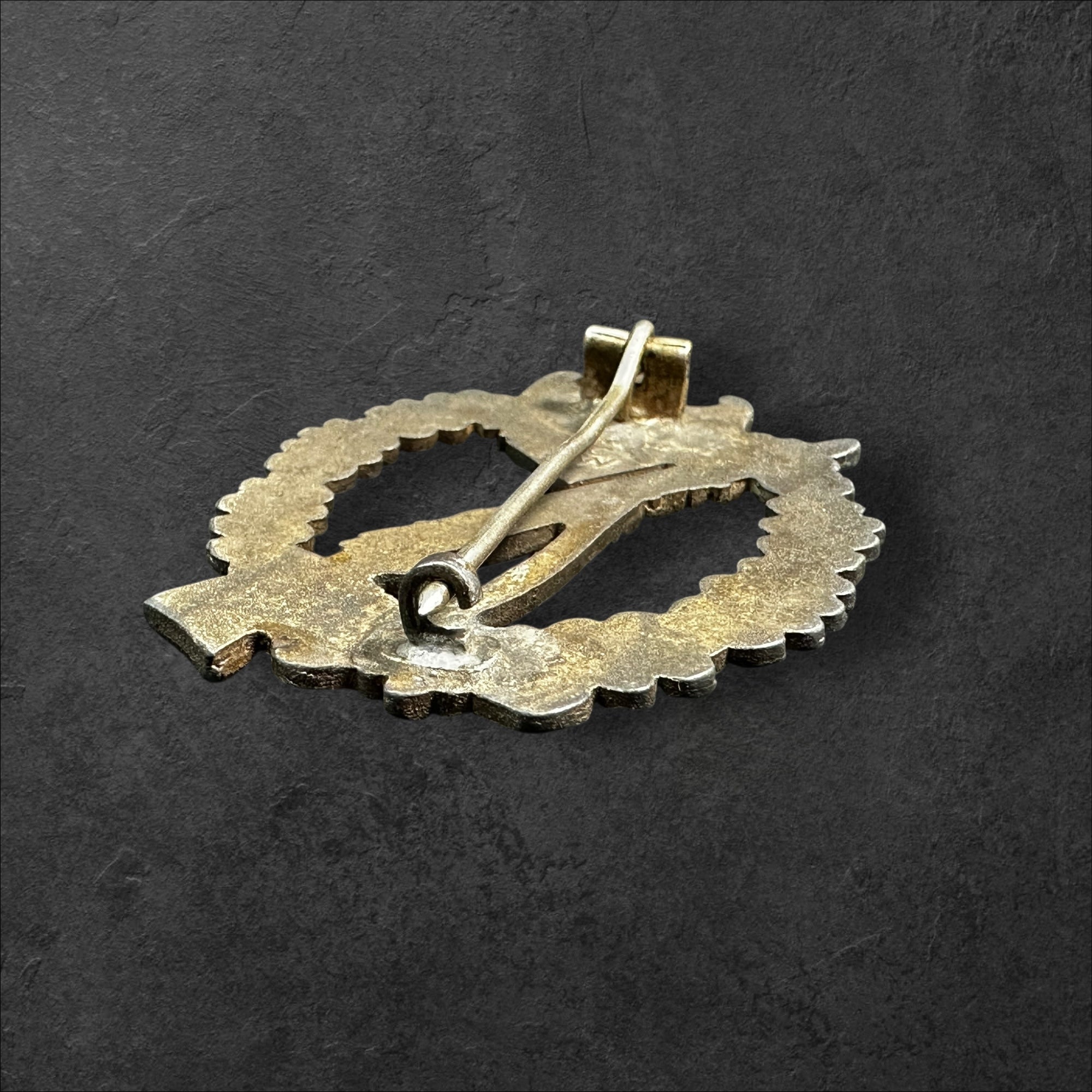 Ein ehrlich getragenes Infanteriesturmabzeichen in silber aus Feinzink mit rückseitiger Markierung des Herstellers Carl Wild, Hamburg