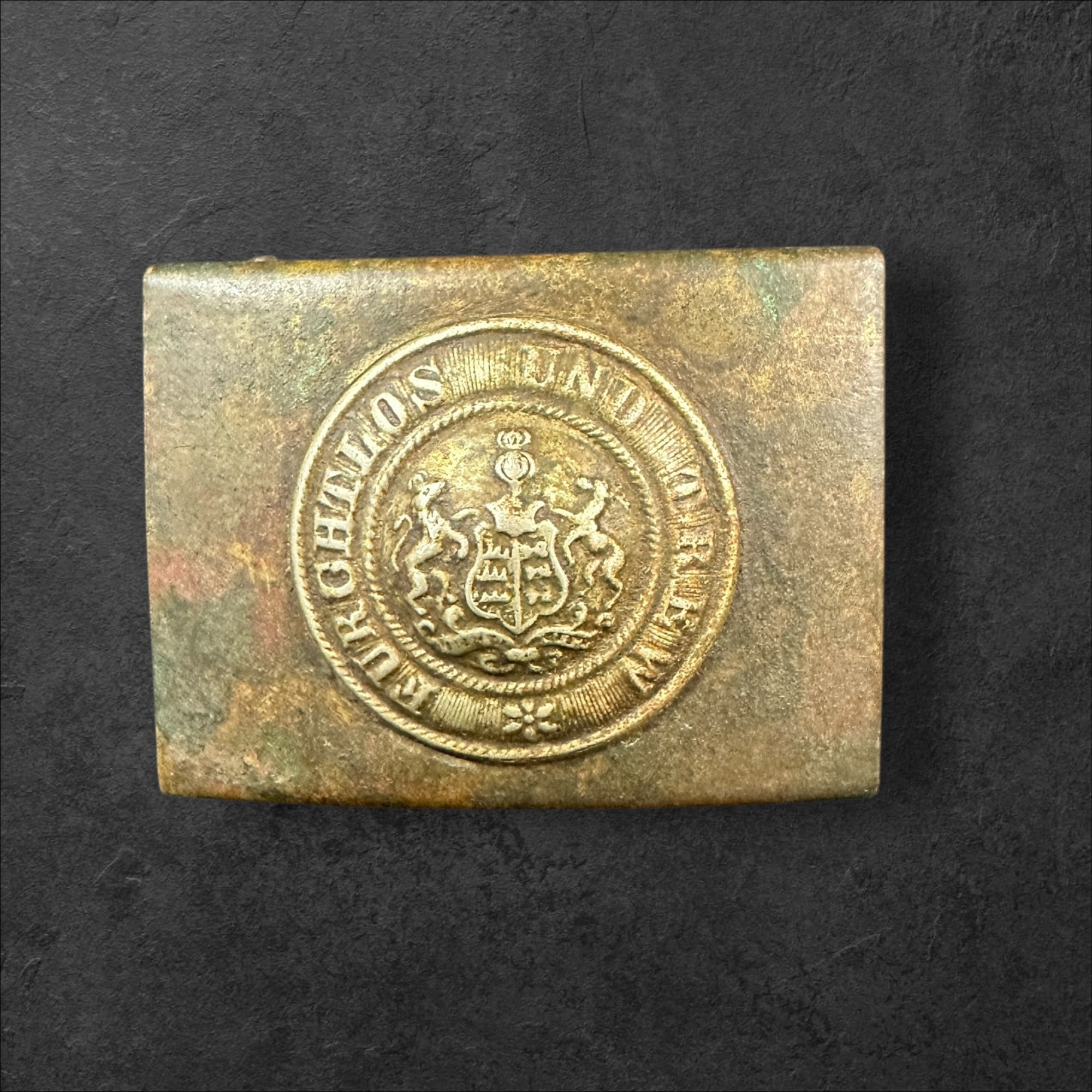 Ein leicht getragenes Koppelschloss der württembergischen Armee in getragenem Zustand aus Messing mit Neusilber