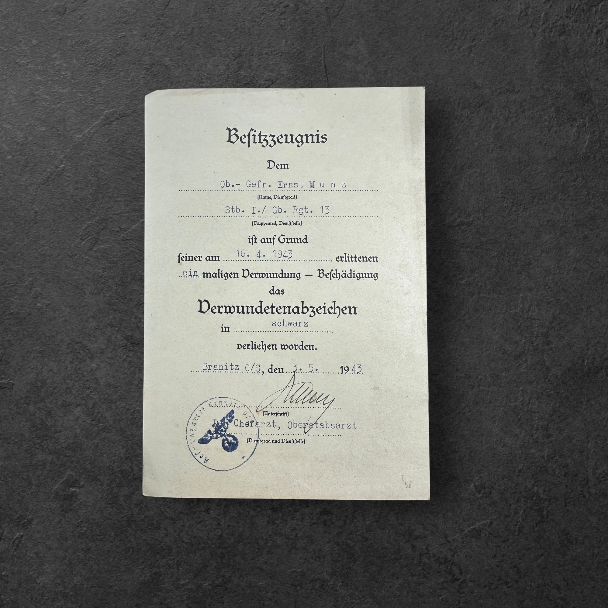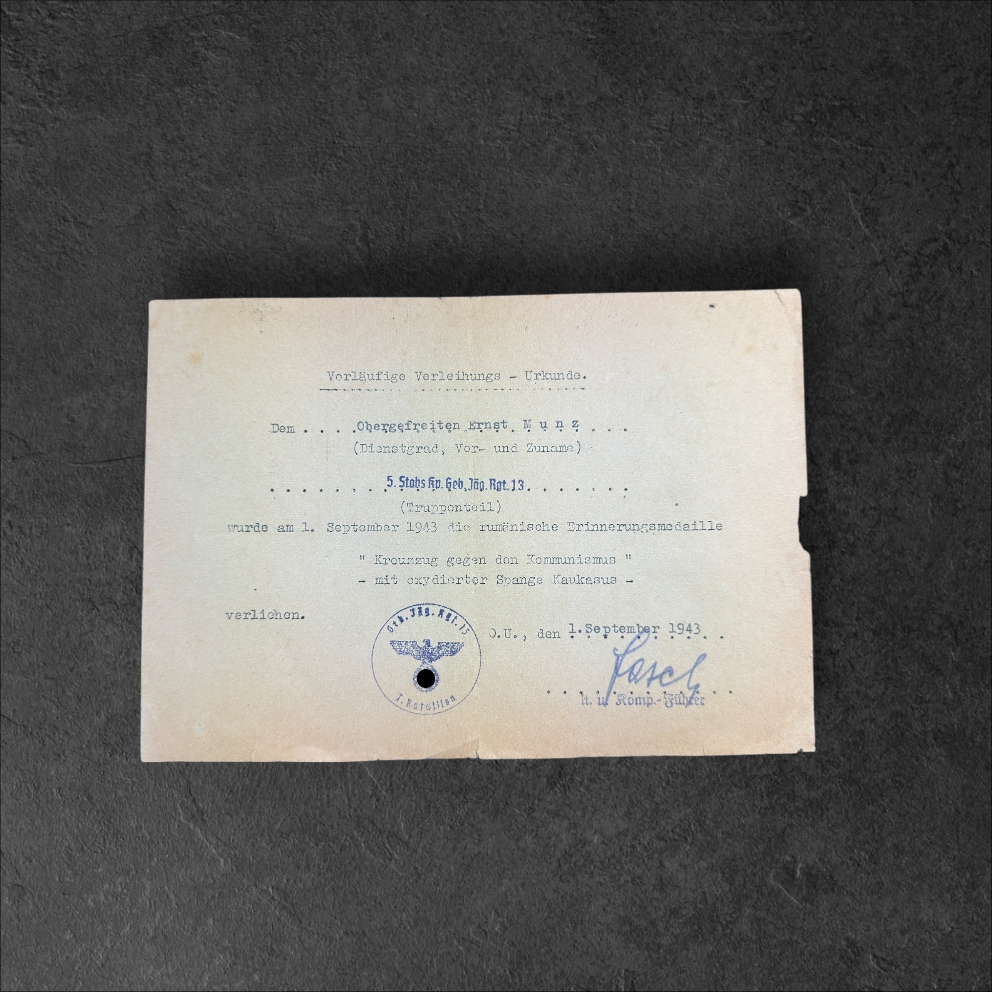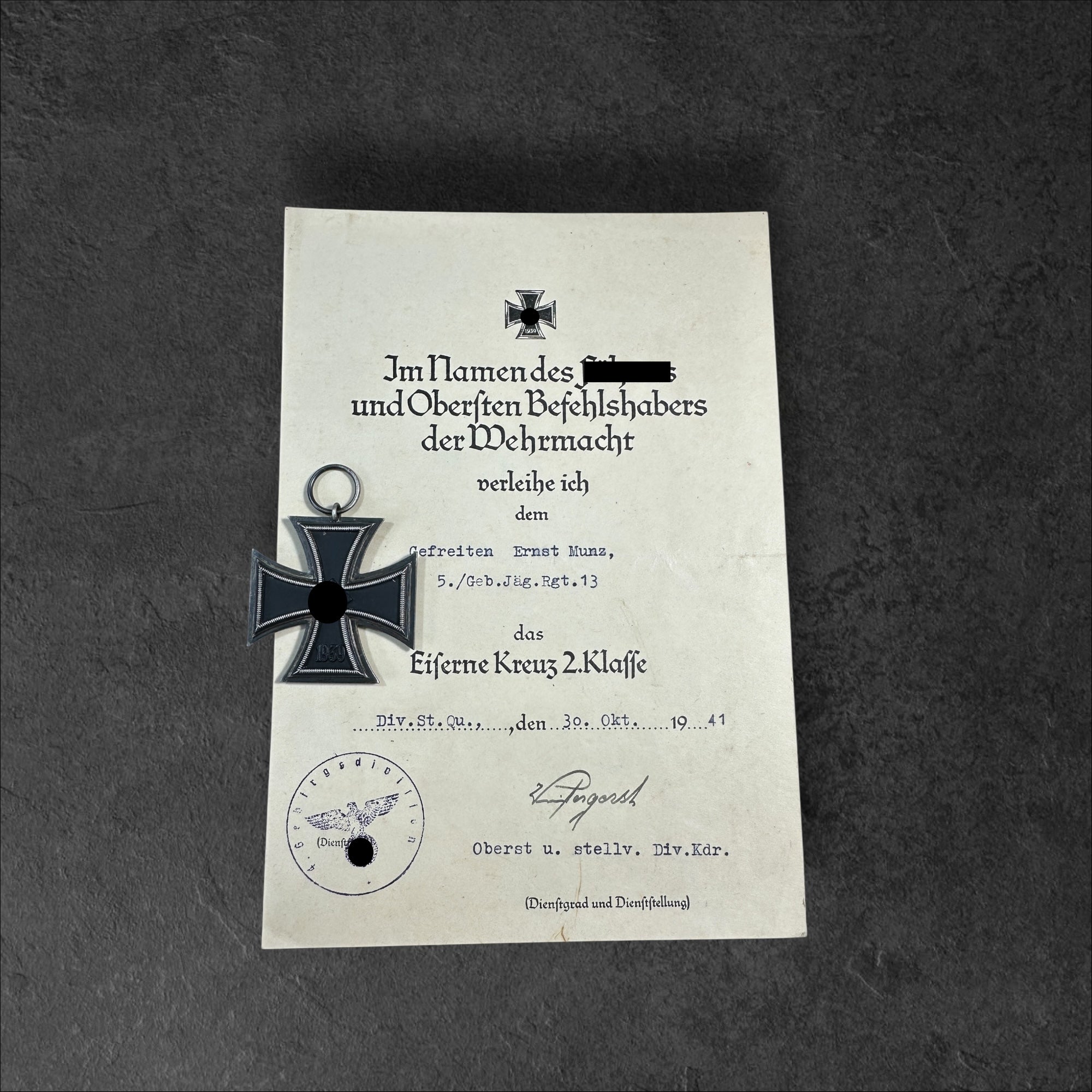 Nachlass des Obergefreiten Ernst Munz, 5.Gebirgsjägerregiment 13 bestehend aus den Verleihungsurkunden zu:
