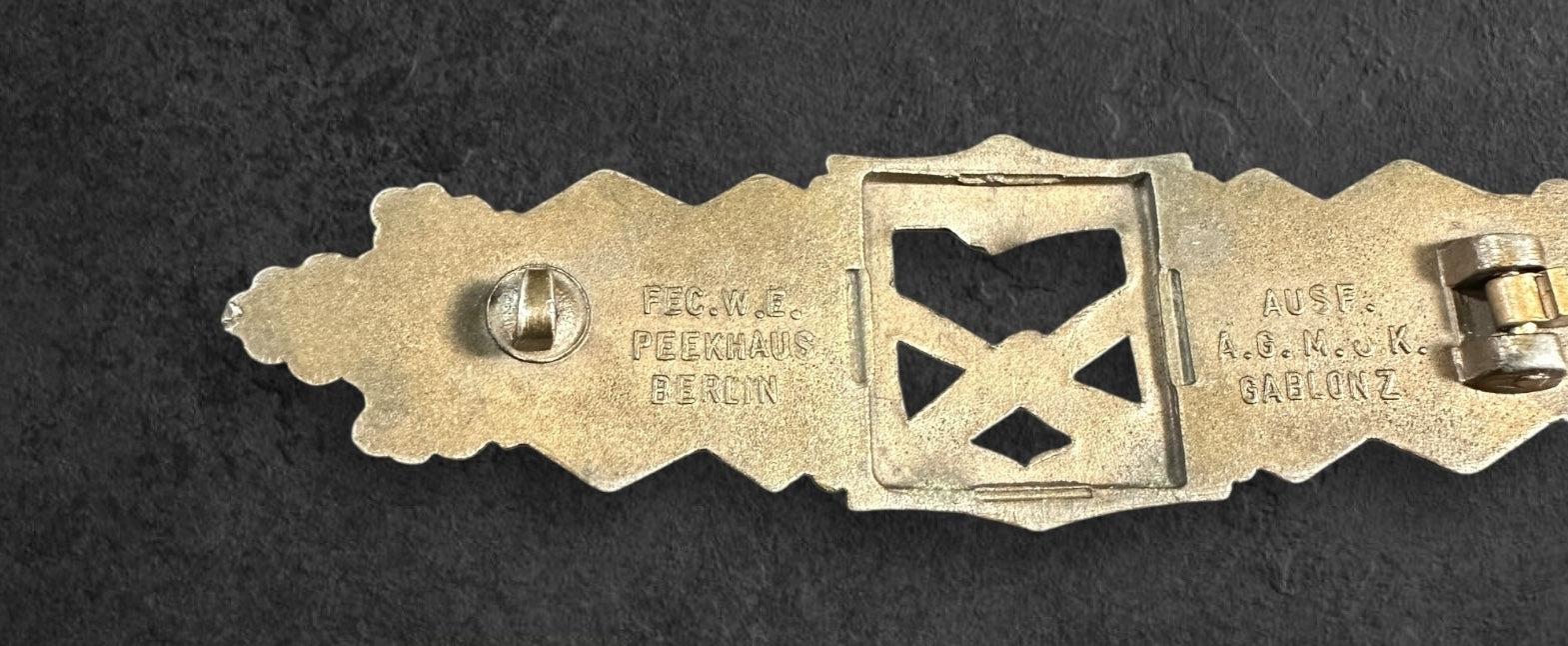 Nahkampfspange in bronze A.G.M.u.K. Gablonz (Entnazifiziert)