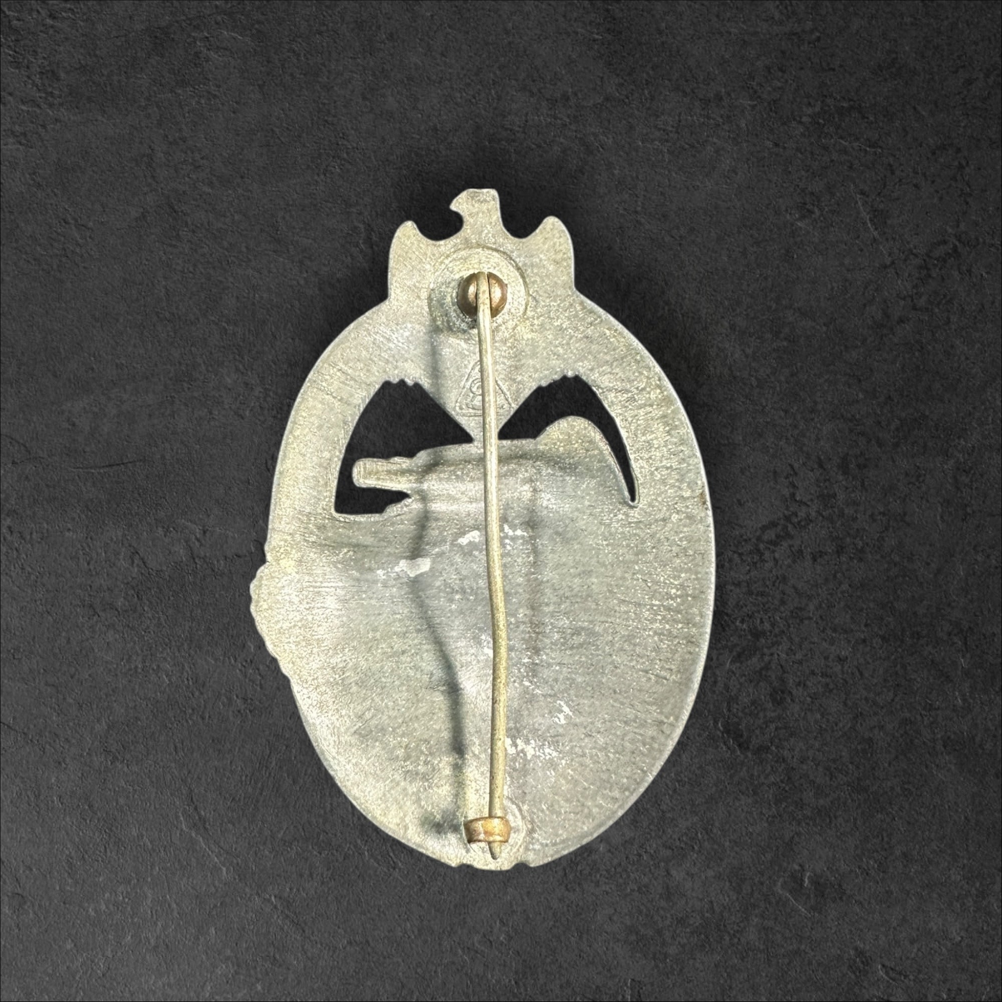Ein ehrlich getragenes Panzerkampfabzeichen in silber aus Feinzink mit Markierung des Herstellers "A.S." in Triangle Adolf Scholz, Gablonz