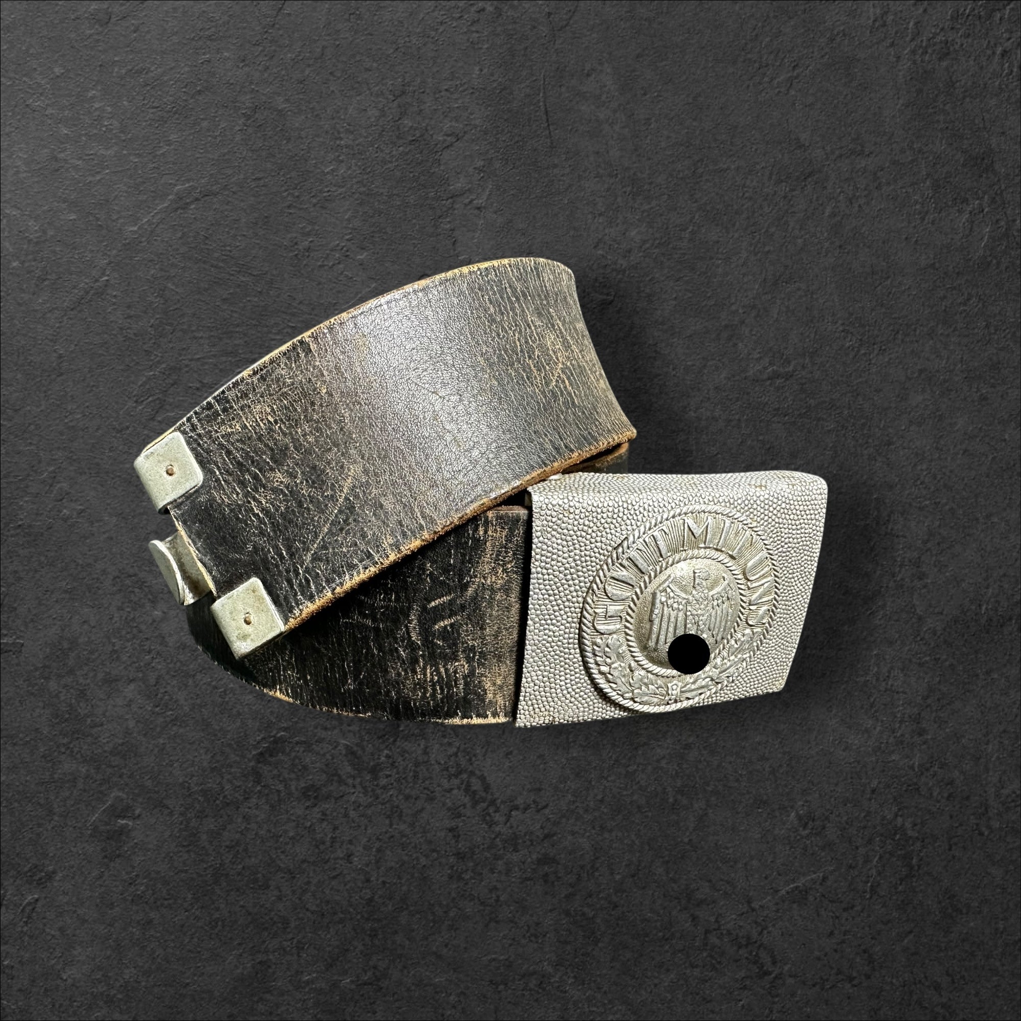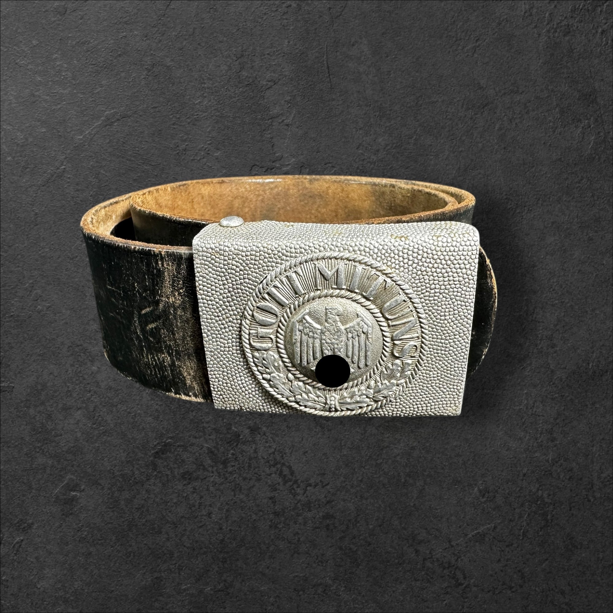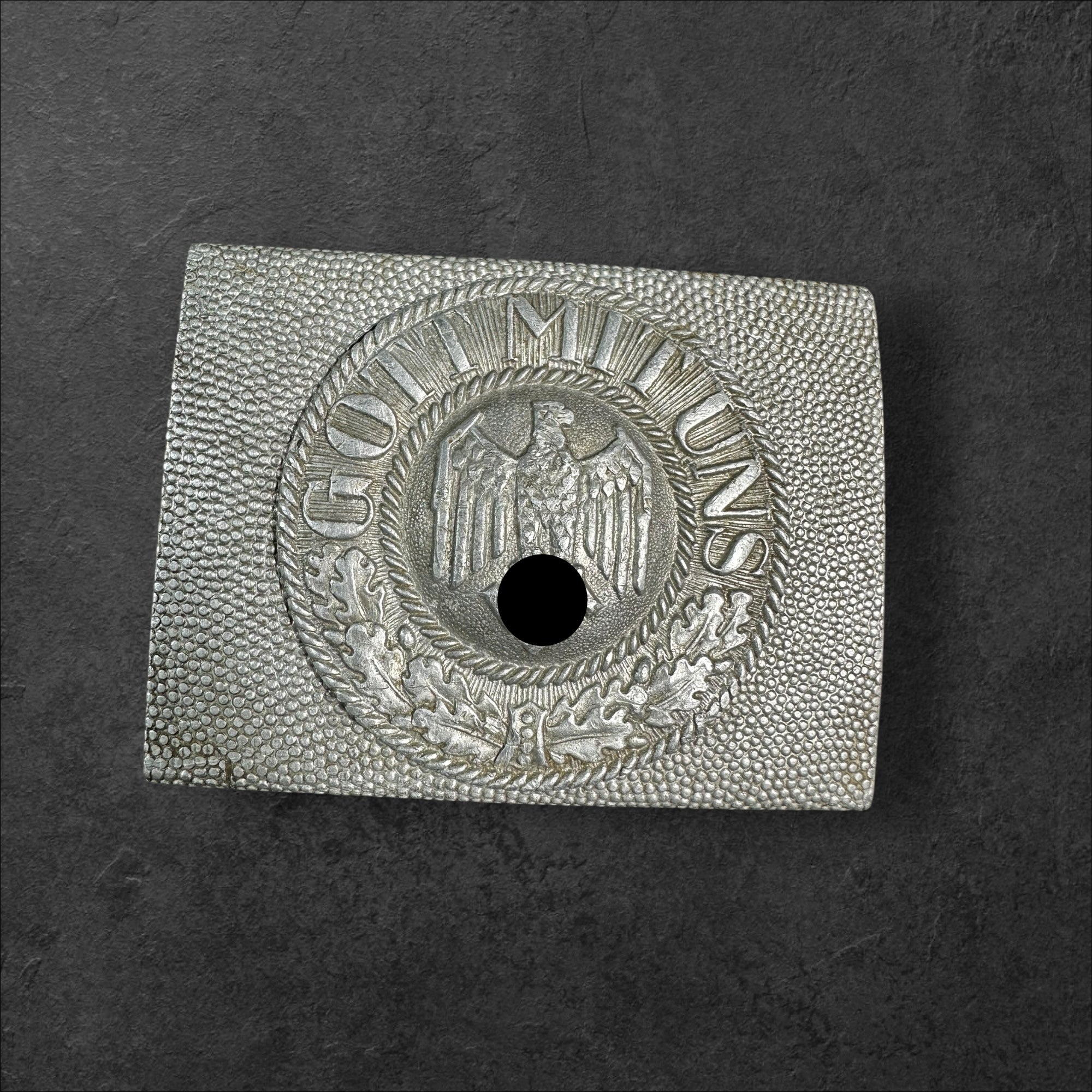 Ein Ausgehkoppelschloss des Heeres aus geprägtem Aluminium, das Medaillon geklammert. Mit passendem Riemen