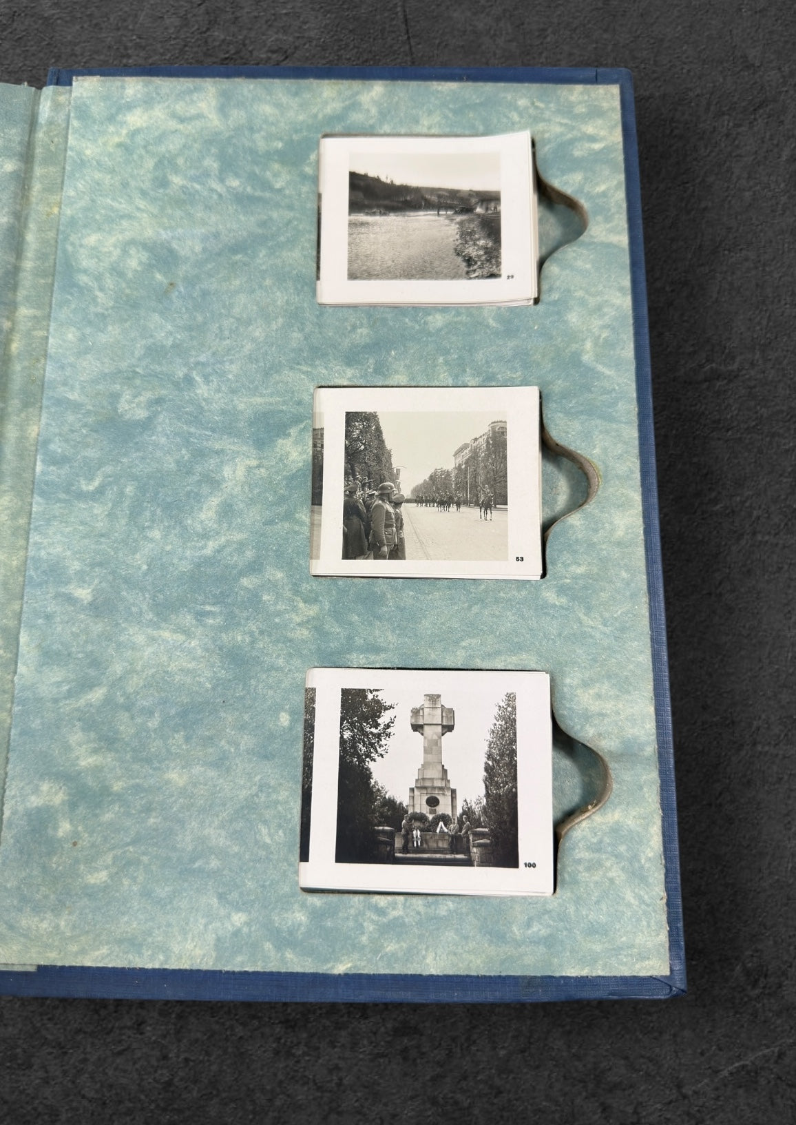 Gut erhaltenes Raumbildalbum in der seltenen blauen Ausgabe, komplett mit Brille und allen Karten