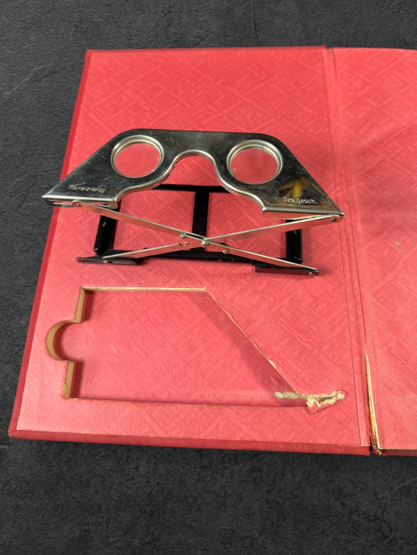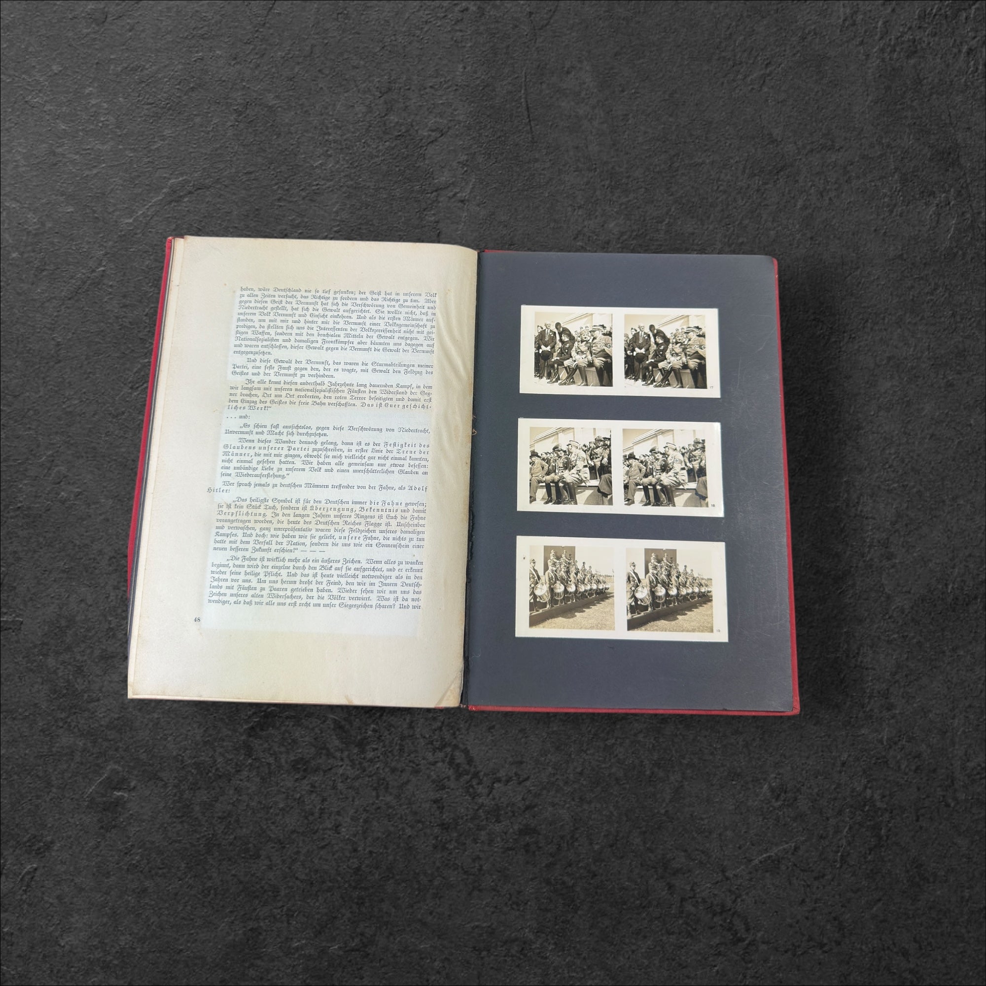 Ein selten zu findendes Raumbildalbum zum Reichsparteitag der Arbeit, komplett mit Brille und allen 100 Bildern. Die ersten 22 Bilder sind im Album eingeklebt, der Einband etwas locker