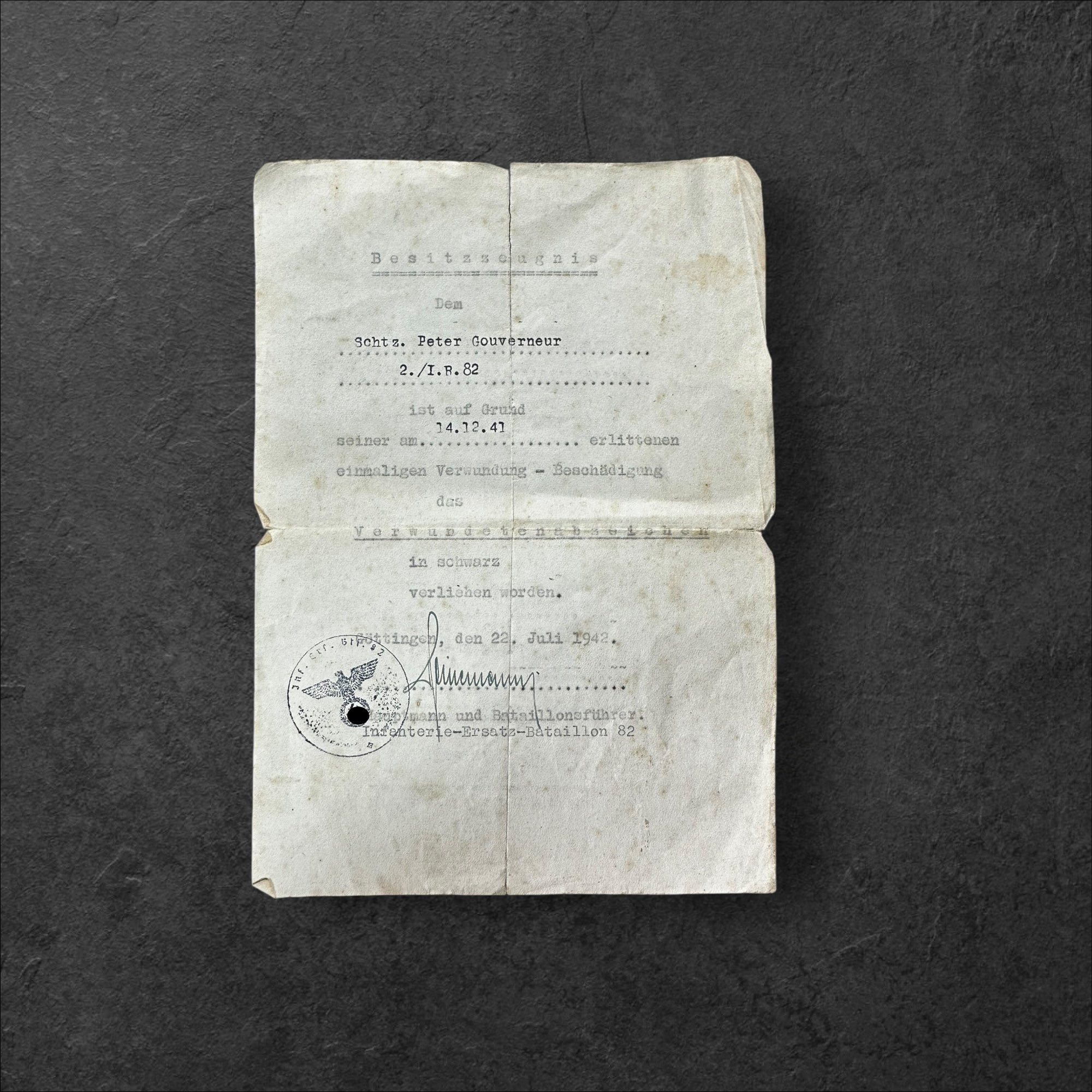 -Besitzzeugnis Verwundetenabzeichen in schwarz 22.07.1942