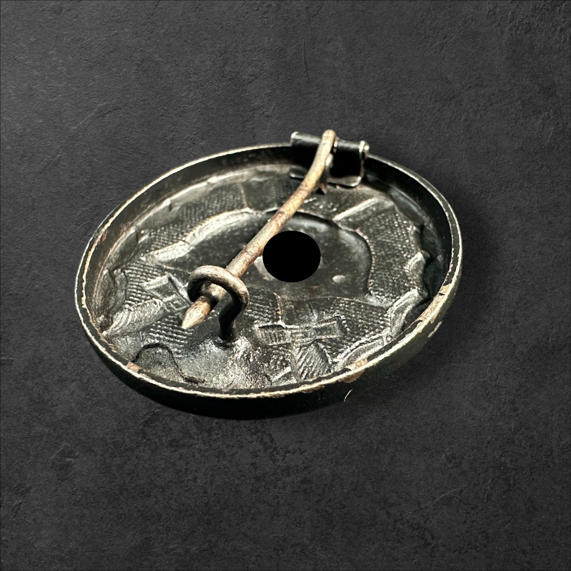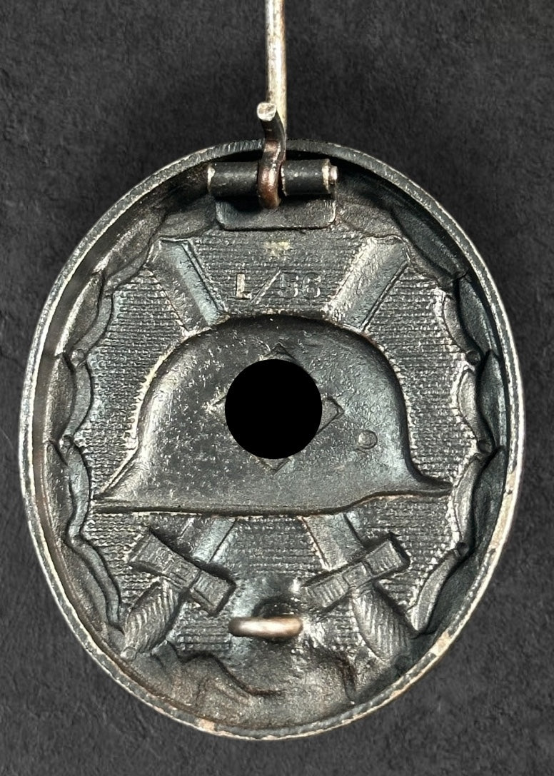Ein getragenes Verwundetenabzeichen in schwarz 1939 aus Eisen mit Markierung des Herstellers "L/56" Funcke & Brüninghaus, Lüdenscheid