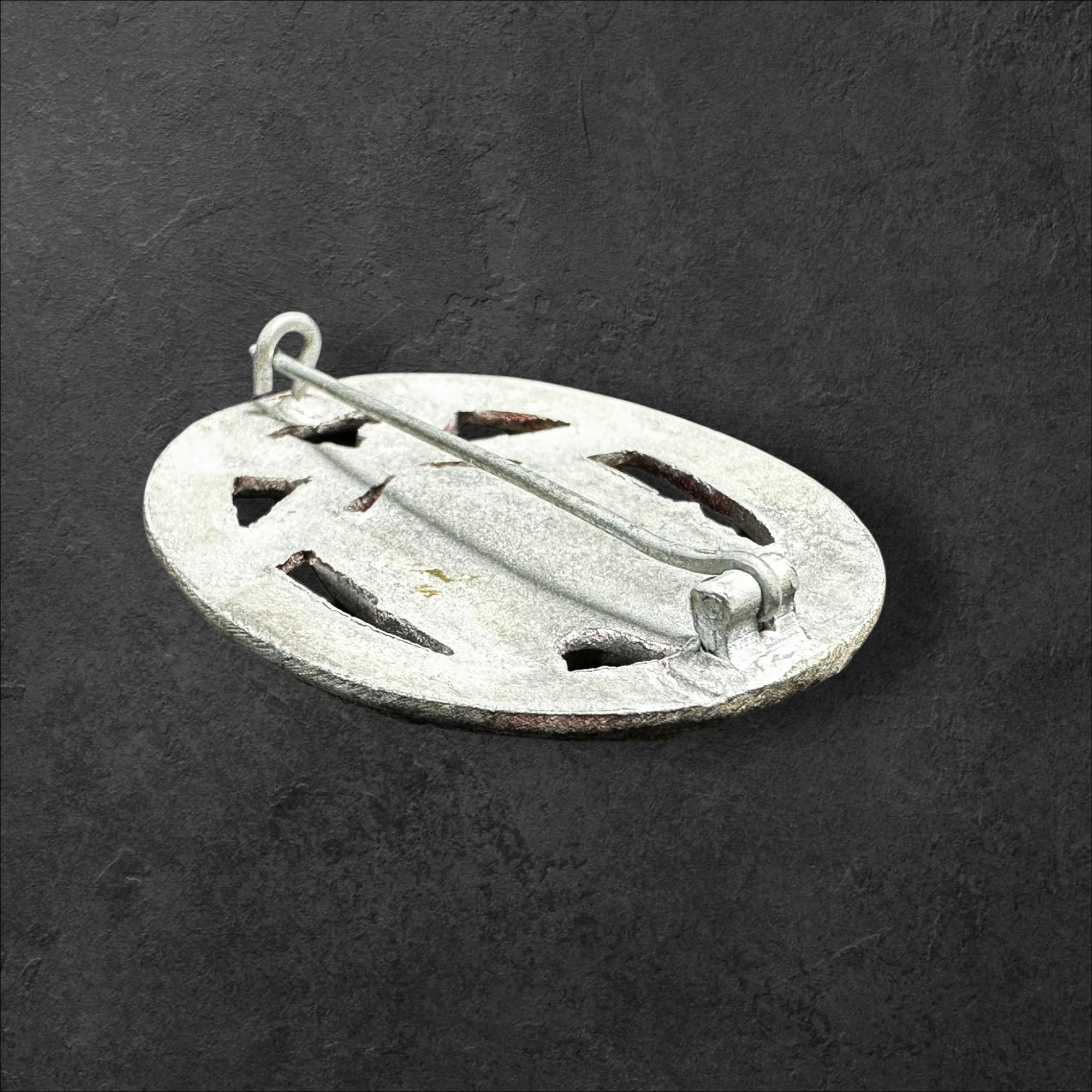 Ein ehrlich getragenes Allgemeines Sturmabzeichen aus Feinzink, ein massives Stück mit gequetschtem Blechscharnier
