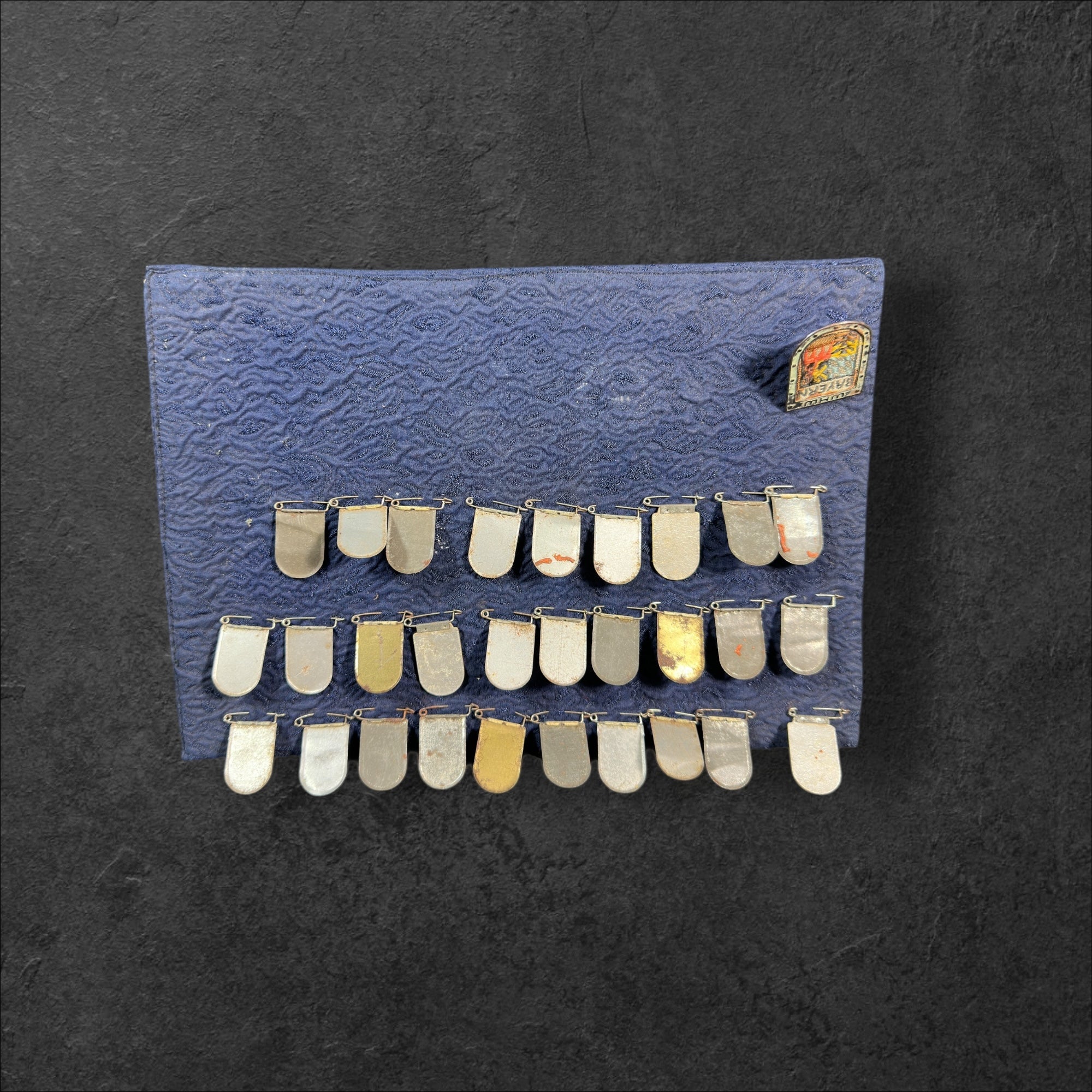 Ein Brett mit verschiedenen WHW Stadtwappen in unterschiedlichen Zuständen