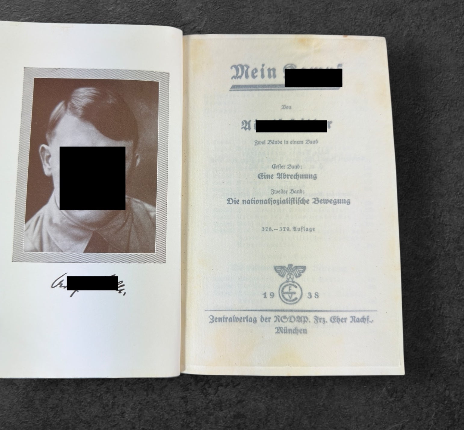 Eine klassische Volksaugabe von 1938 mit interessanter Widmung im Innenteil zur Erinnerung an die Dienstzeit bei der 1.Panzer Abwehr Abteilung 10
