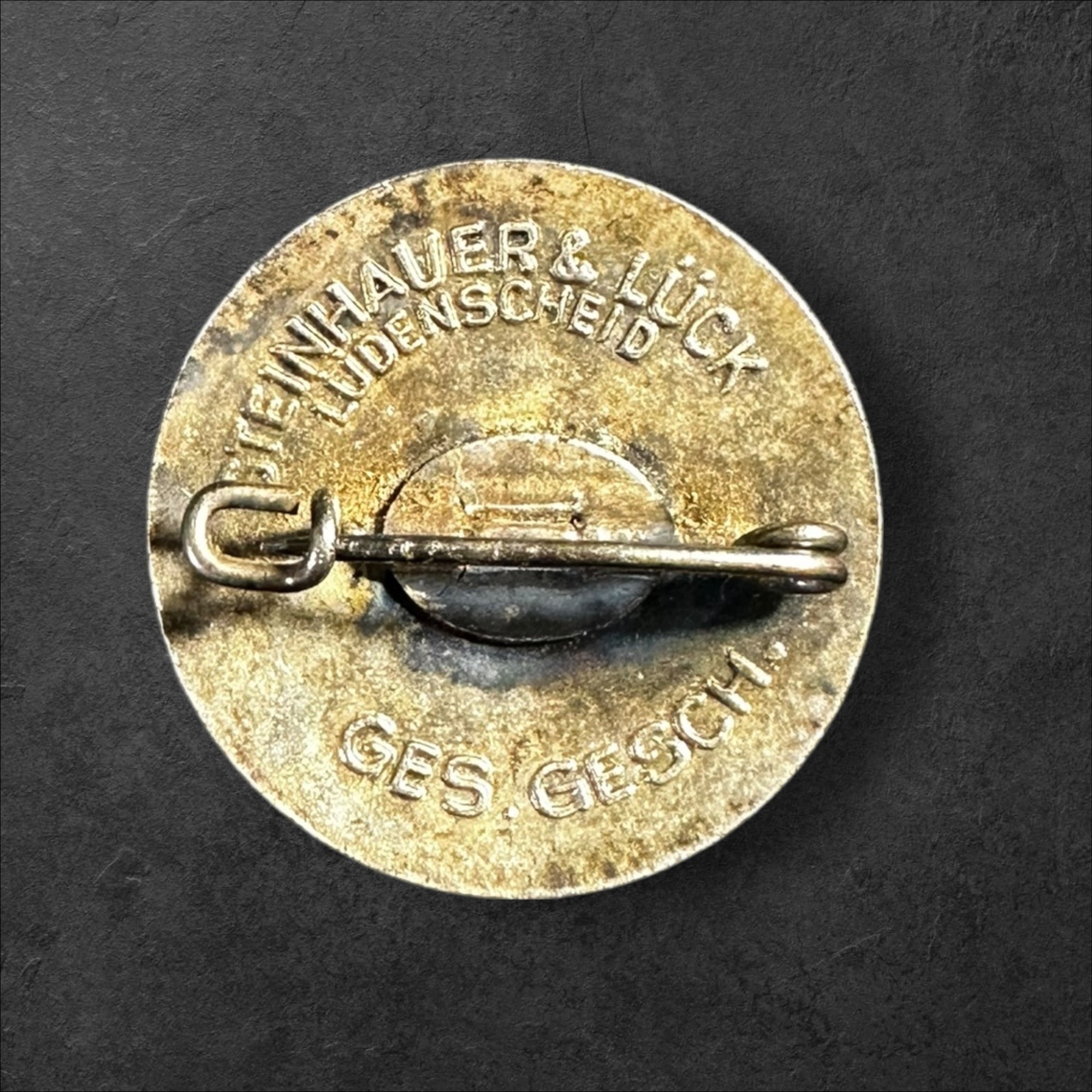Emailliertes Abzeichen, rückseitig mit Markierung des Herstellers Steinhauer und Lück, Lüdenscheid und "Ges. Gesch.