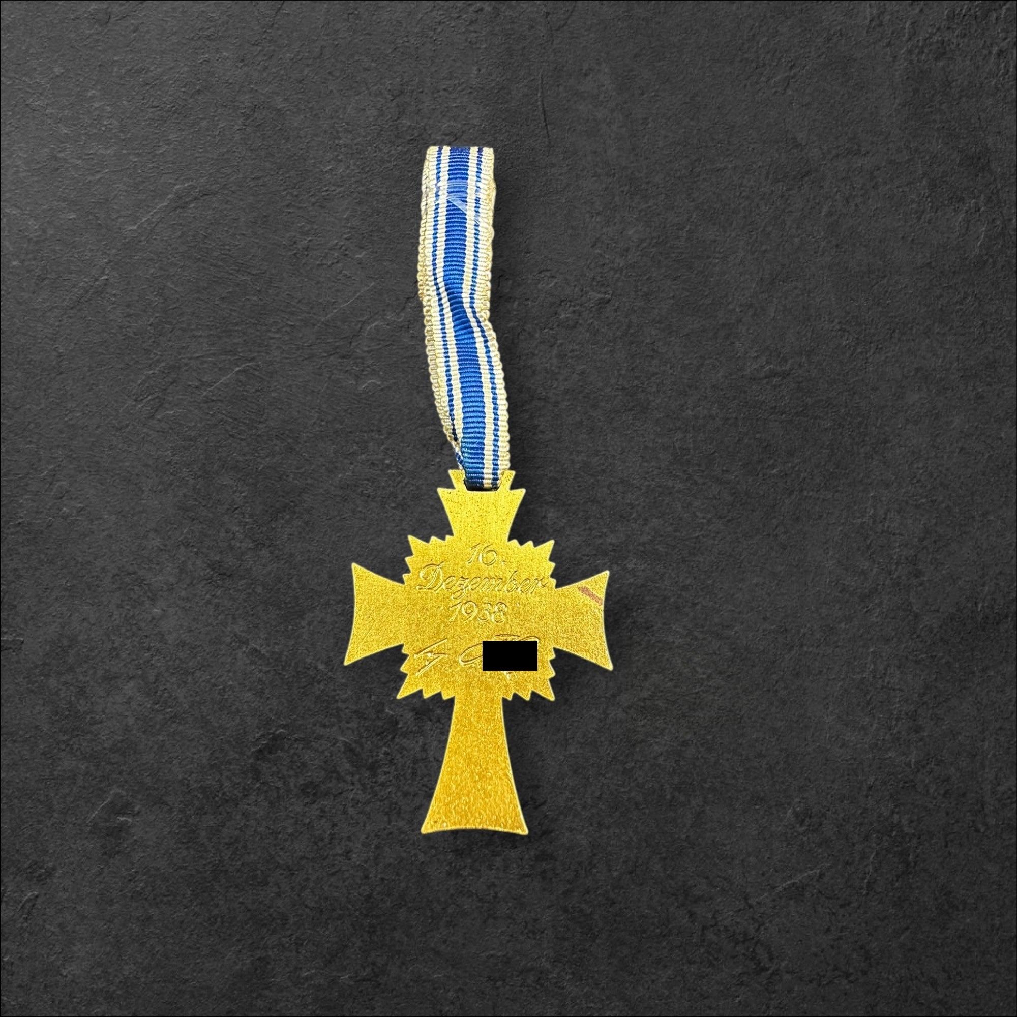 Ein sehr gut erhaltenes Mutterkreuz in gold im passenden Etui des Herstellers Werner Redo, Saarlautern, dass Etui leicht abgegriffen