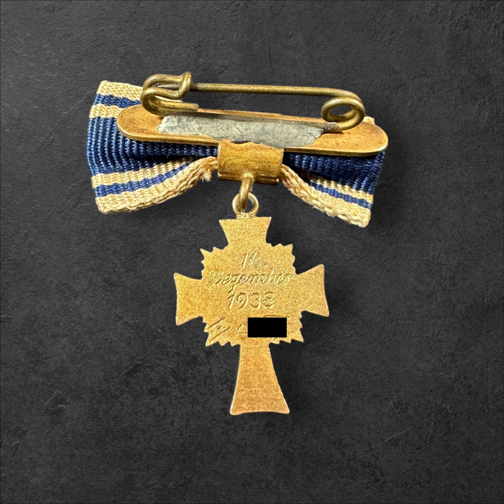 Eine selten zu findende Miniatur der goldenen Mutterkreuz mit Eichenlaub an der Nadel