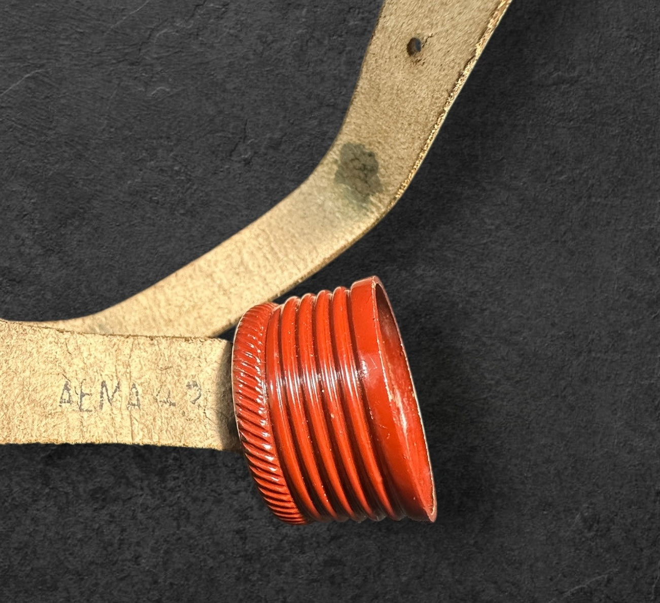 Eine absolut selten zu findende Feldflasche der späten Fertigungsperiode. Die Flasche befindet sich im Mint Zustand, der Becher mit "AEMA44" gestempelt genauso wie der Riemen, das Leder Weich und geschmeidig. Ein absolutes Top Stück welches nicht oft auftaucht