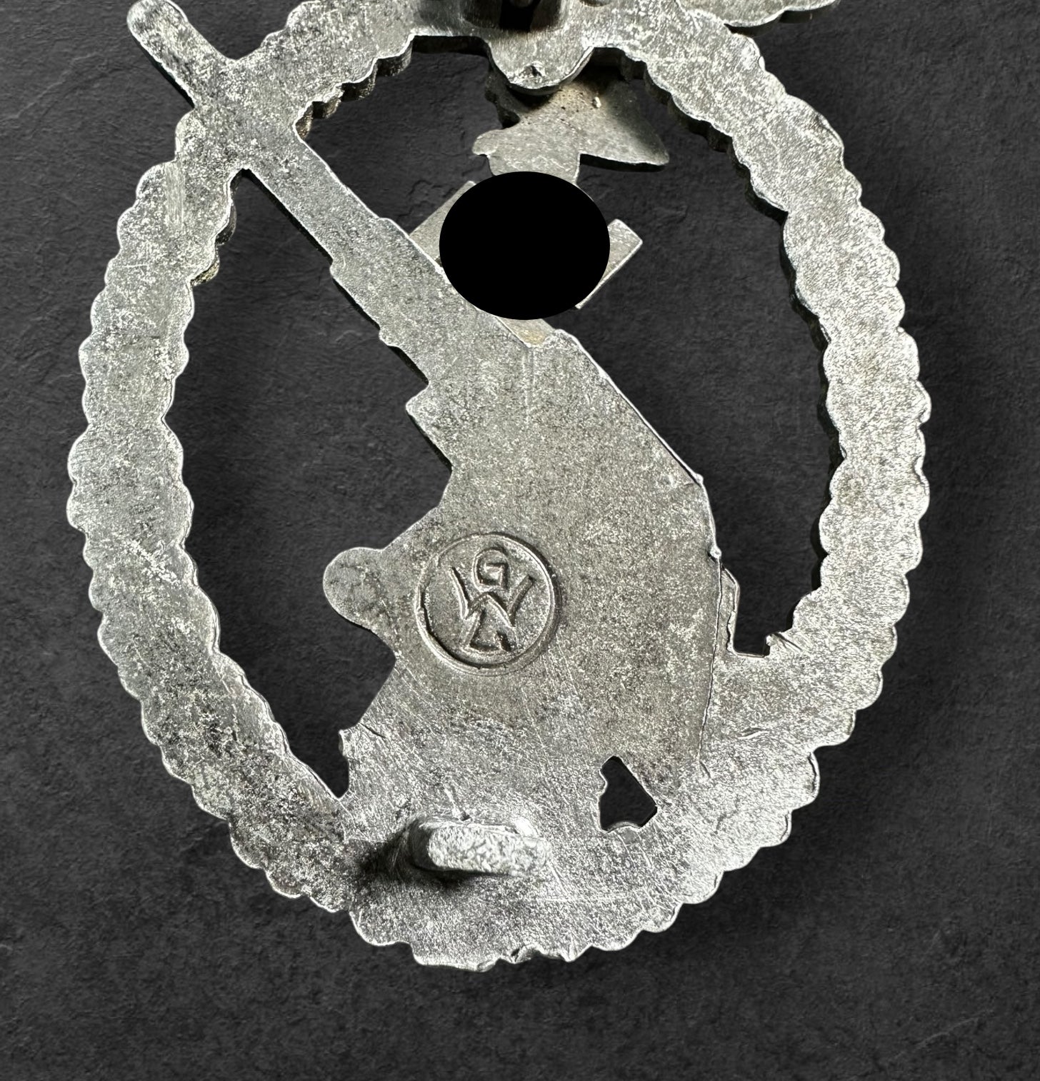 Ein selten zu findendes, original Flakkampfabzeichen der Luftwaffe aus Feinzink mit rückseitiger Markierung des Herstellers Gebrüder Wegerhoff, Lüdenscheid
