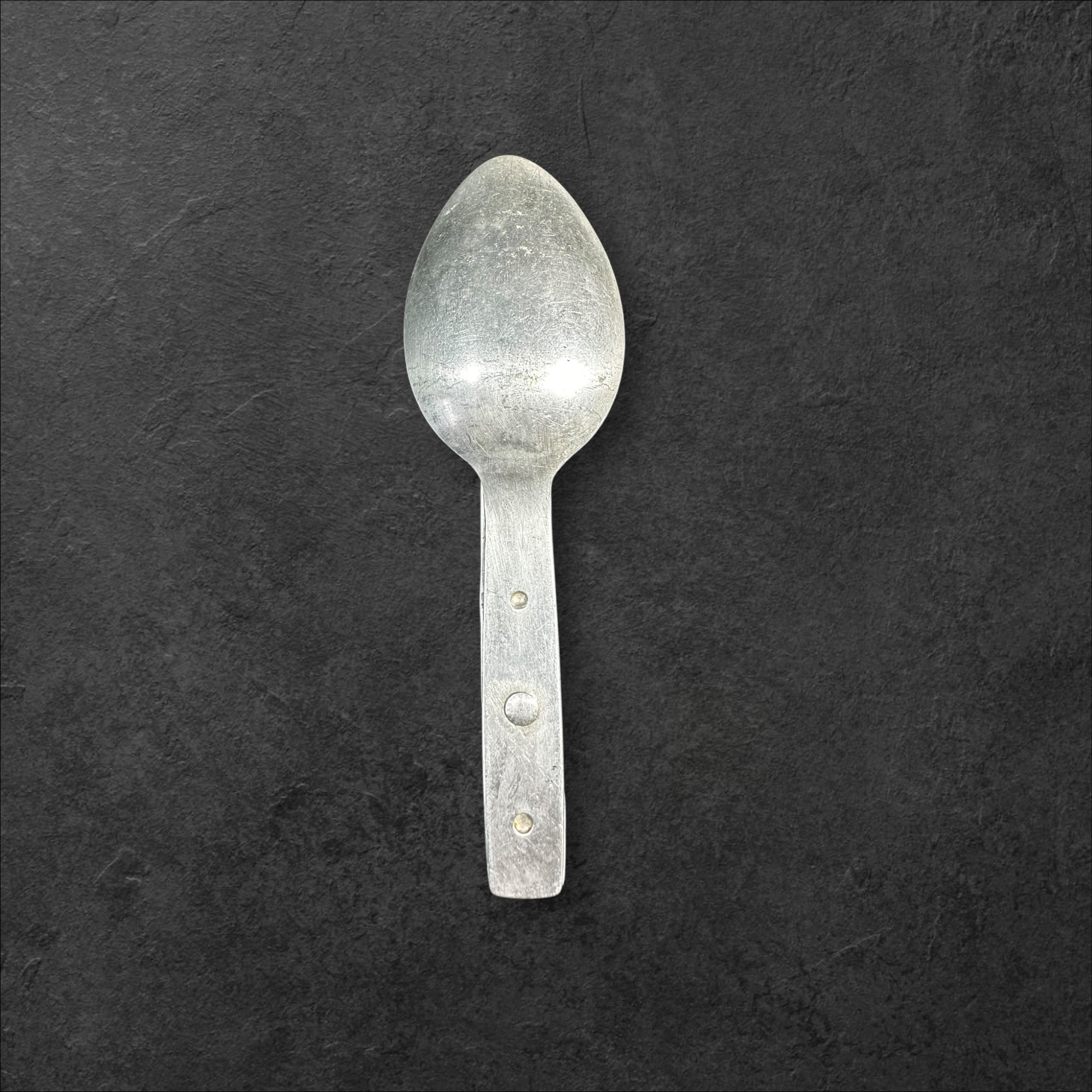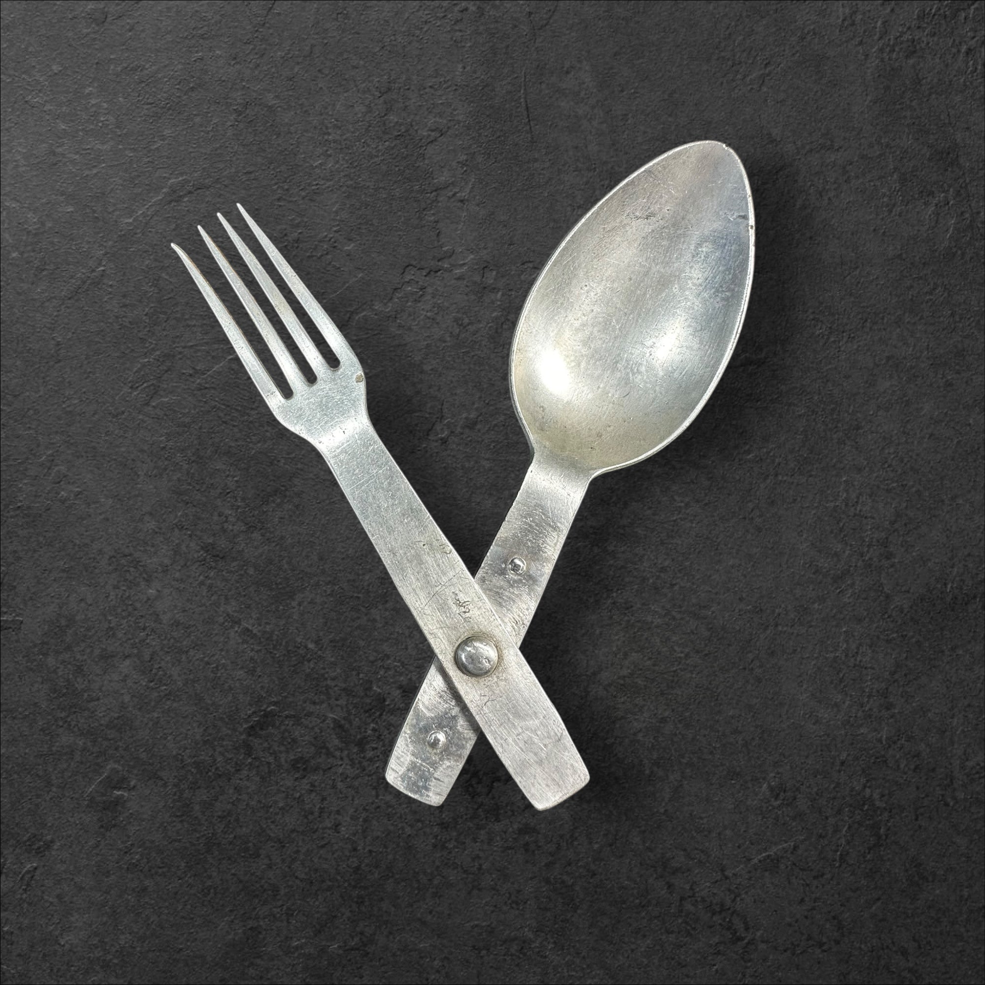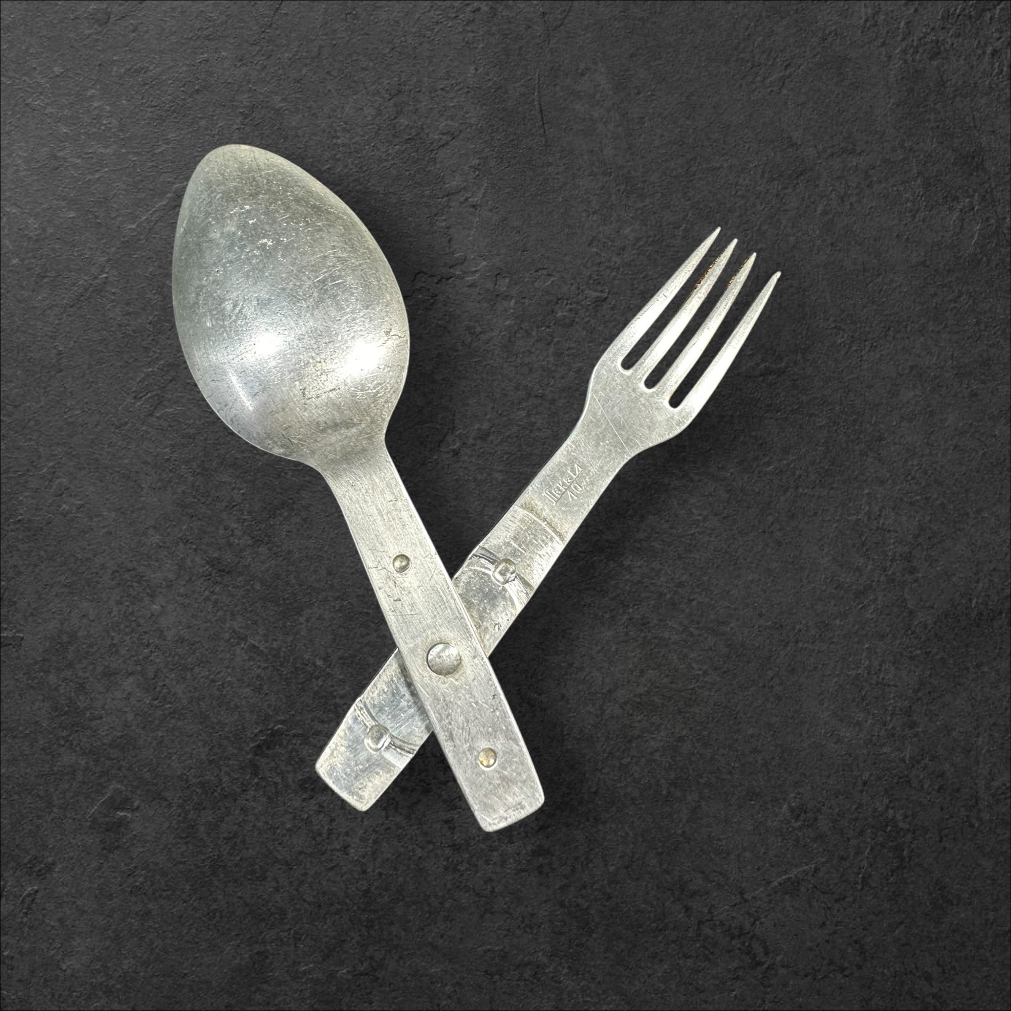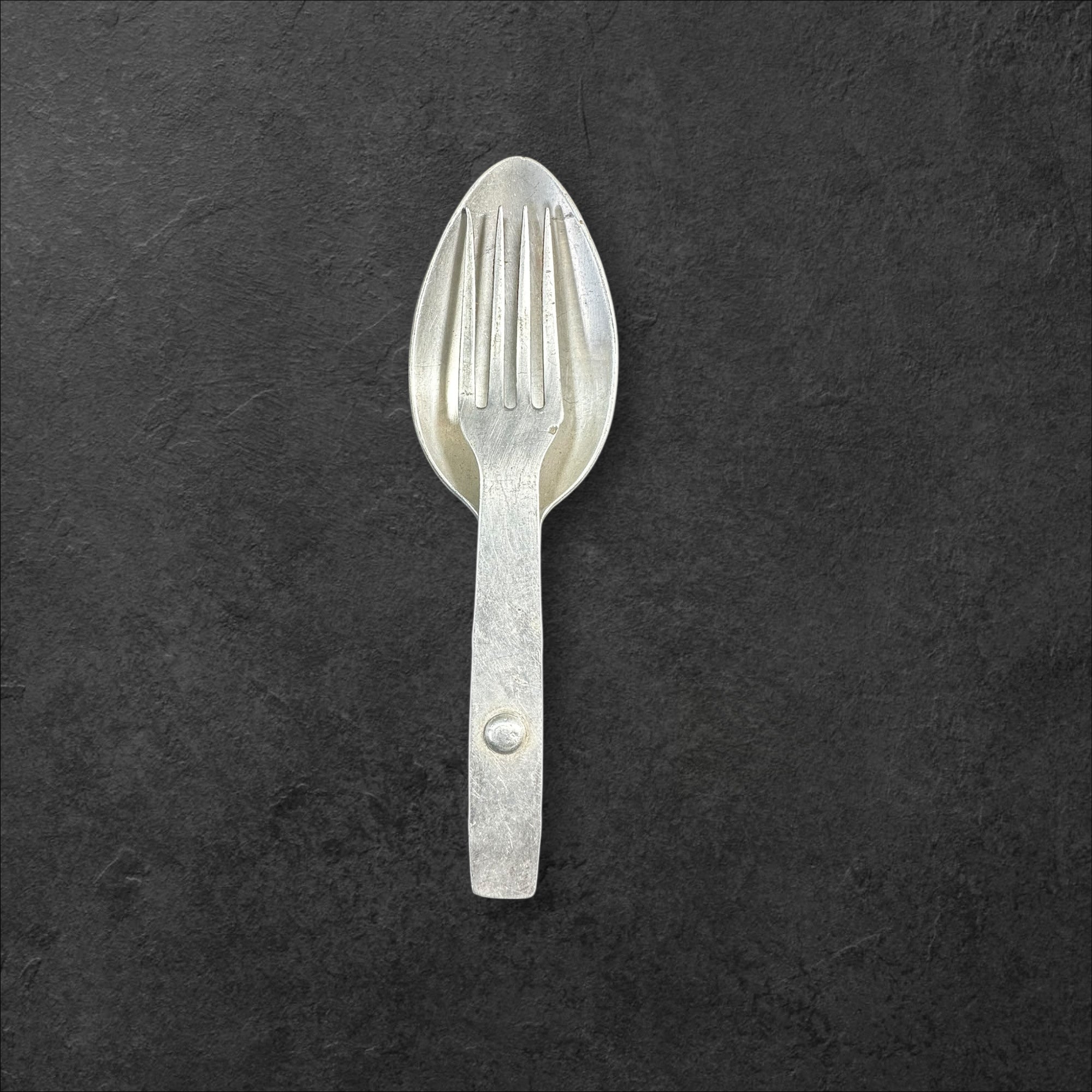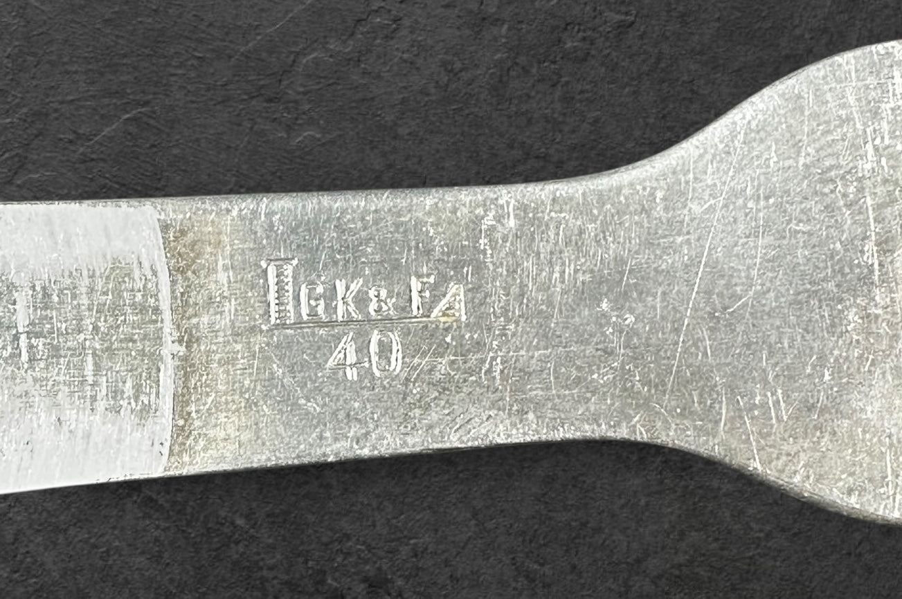 Ein gut erhaltener Göffel der Wehrmacht aus Aluminium mit Markierung des Herstellers LGK&FA/40