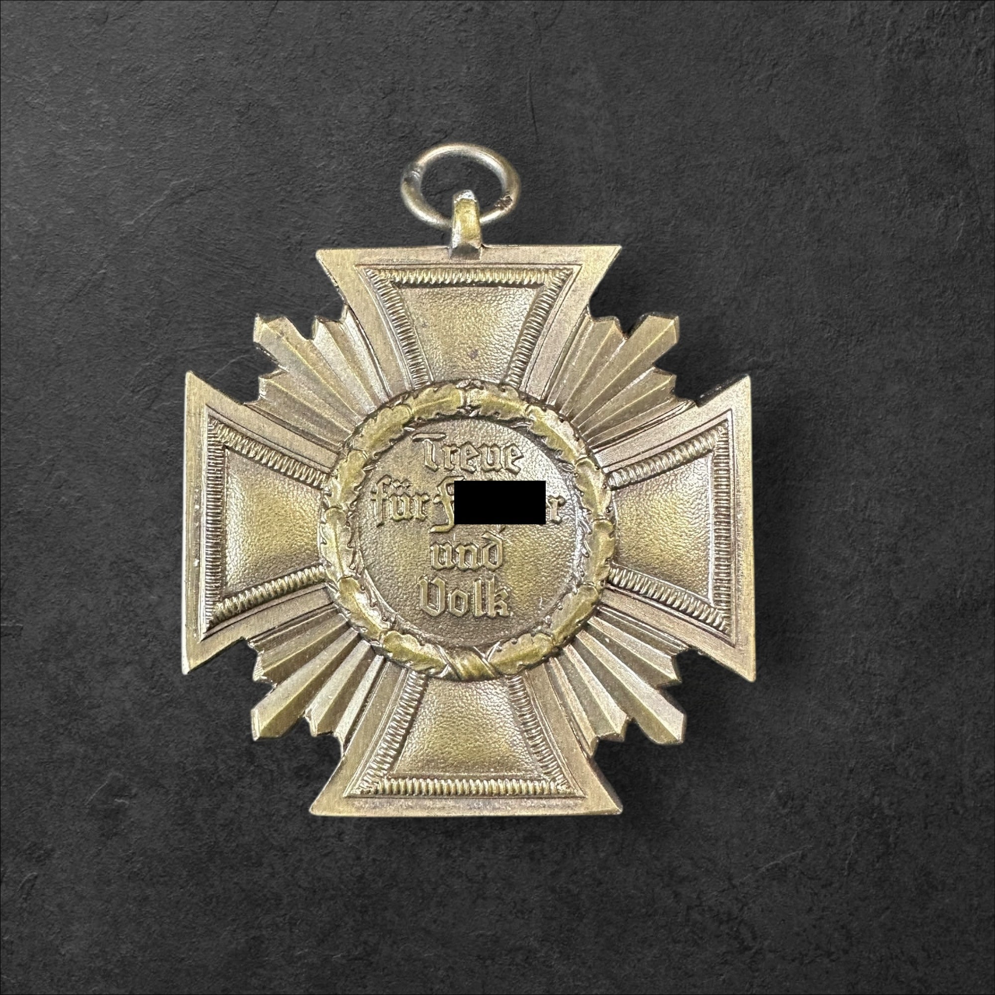 Eine ungetragene NSDAP Dienstauzeichnung 1.Stufe in bronze aus Cupal gefertigt mit langem Band und Markierung des Herstellers "10" Förster & Barth, Pforzheim in passender Verleihungsschachtel