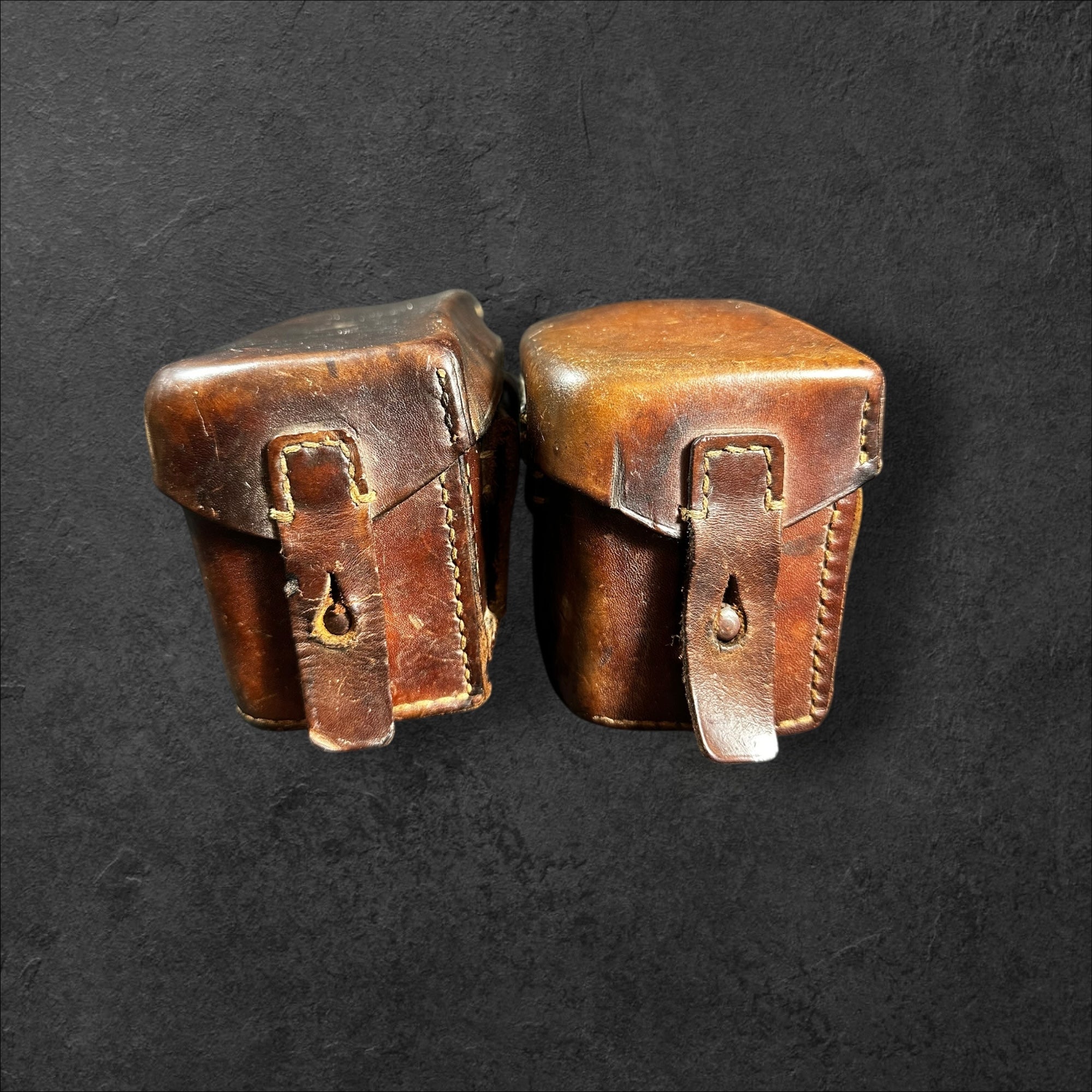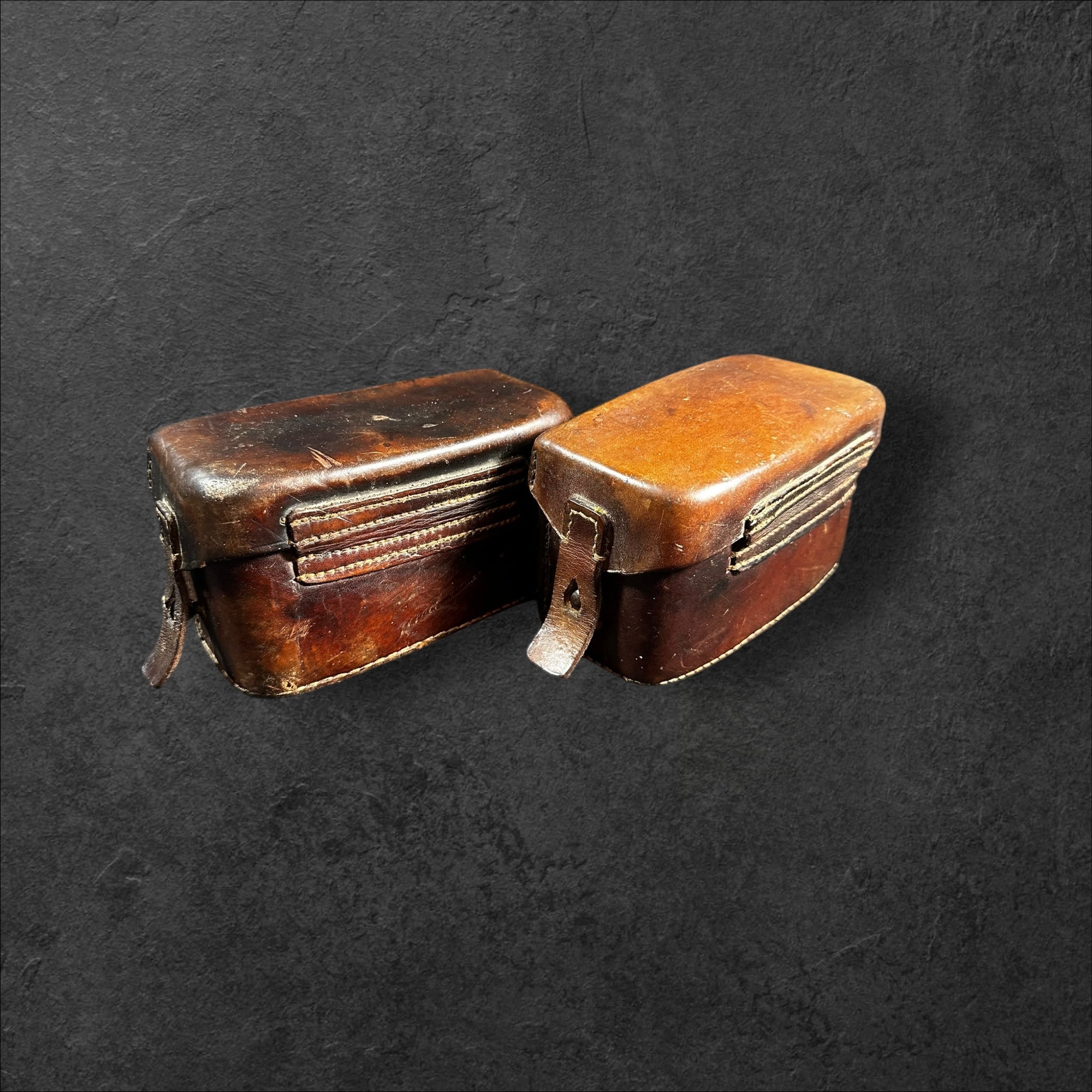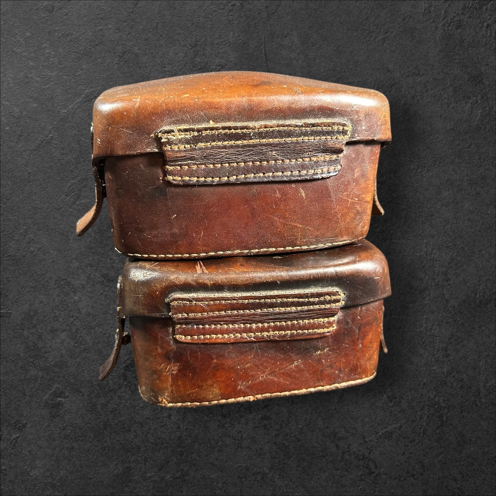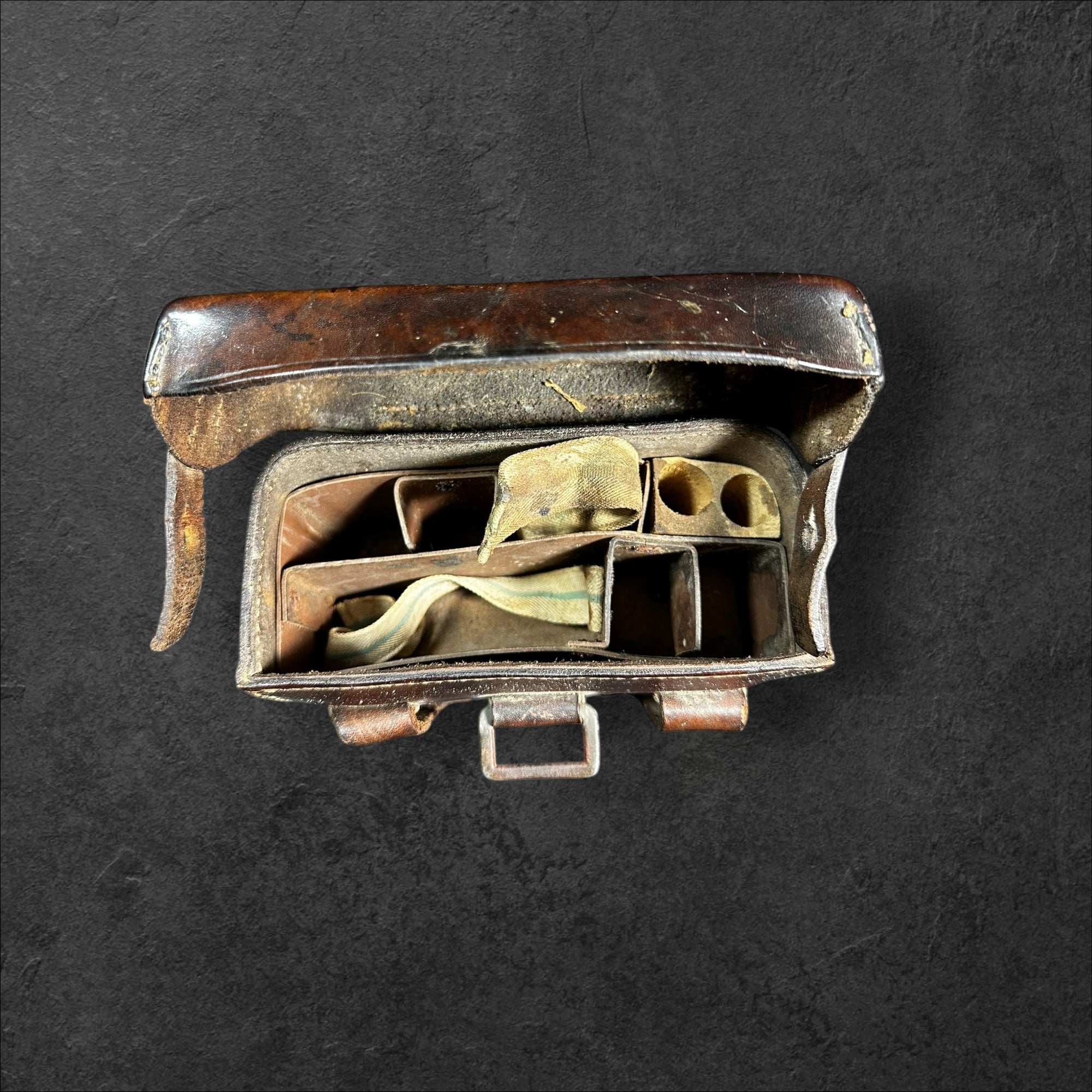 Ein sehr selten zu findendes Paar Sanitätstaschen in leicht getragenen Zustand. Die Stücke paarig und beide vom Hersteller Adolph Schwartz &Co, Berlin N.39, 1916. Zusätzlich mit "L" und "R" gekennzeichnet. Komplett mit Packzettel und Innenleben