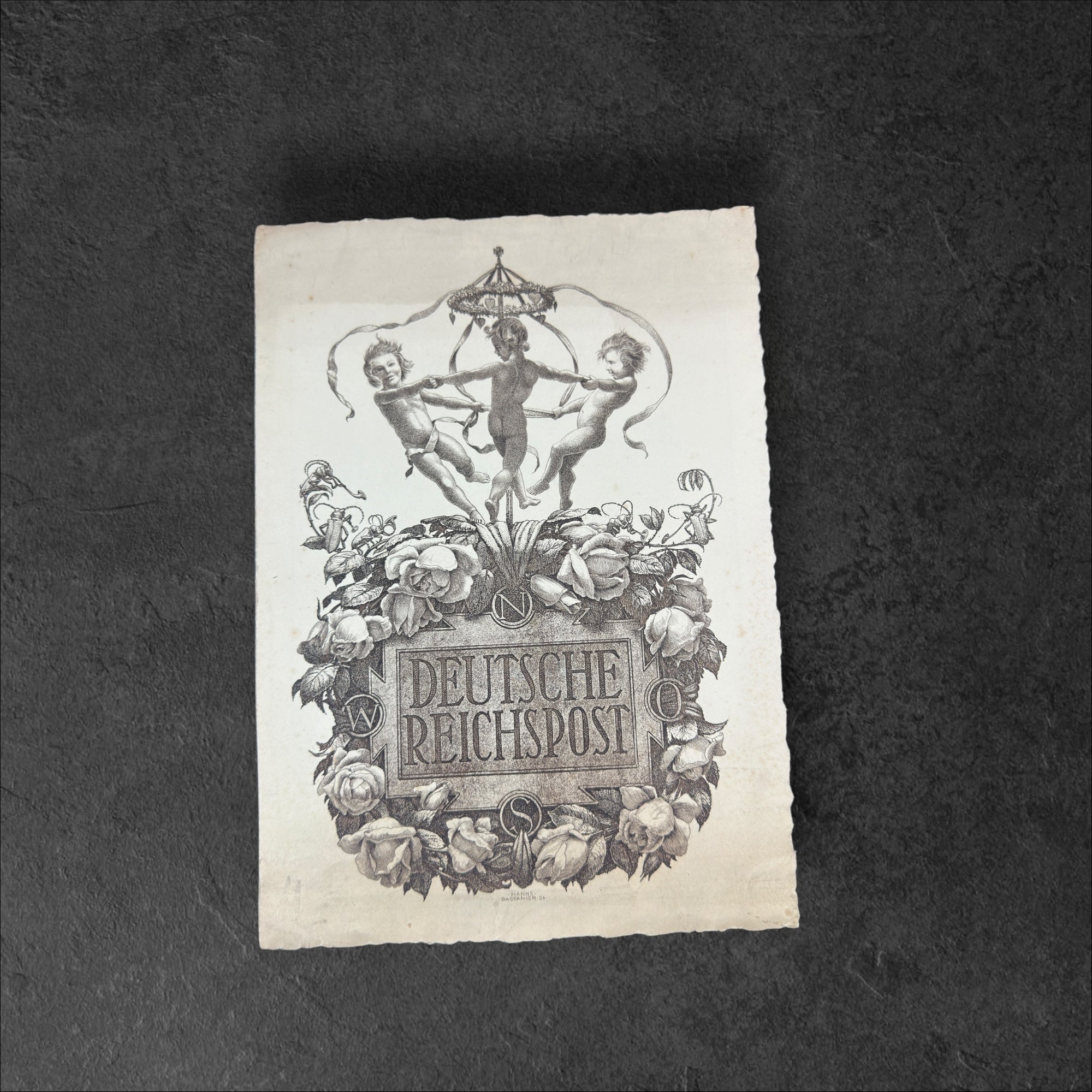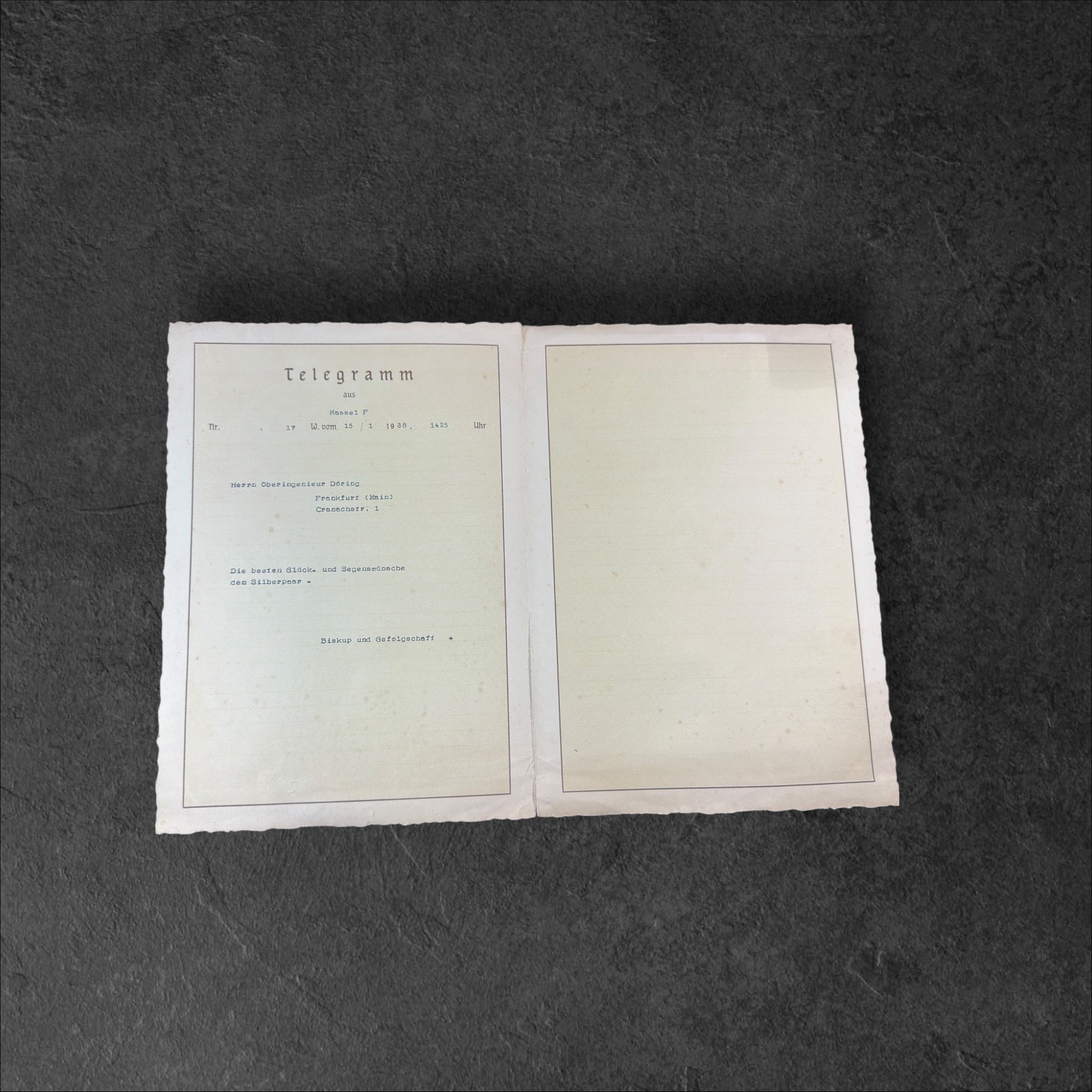 Schmuckblatt eines Telegram der Deutschen Reichspost, mittig an der Falte eingerissen