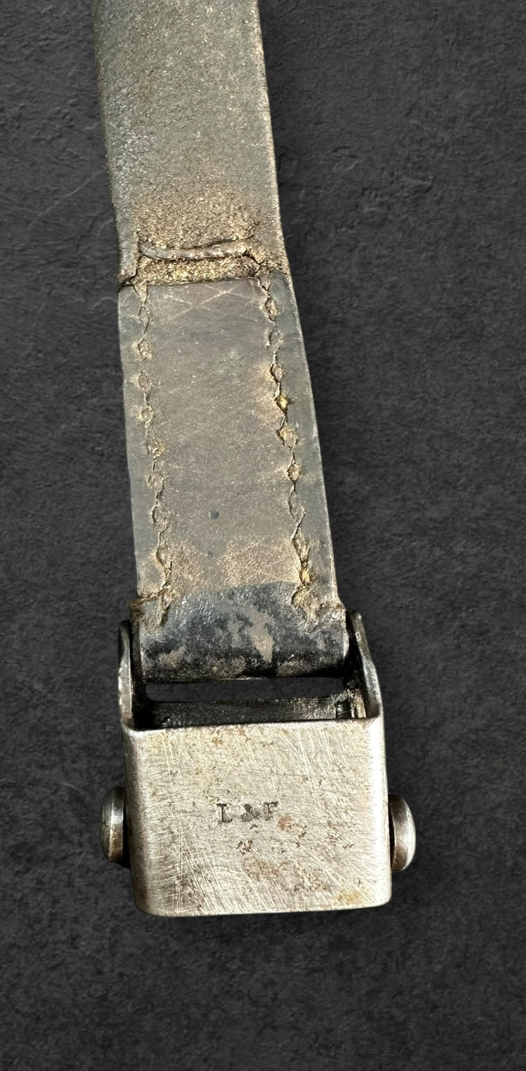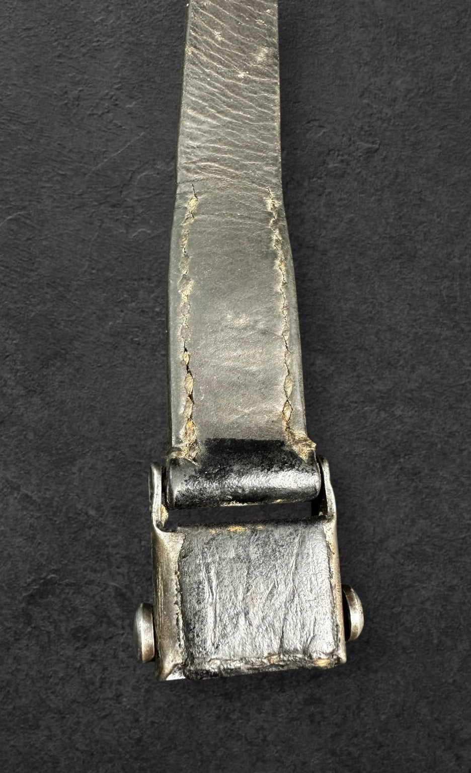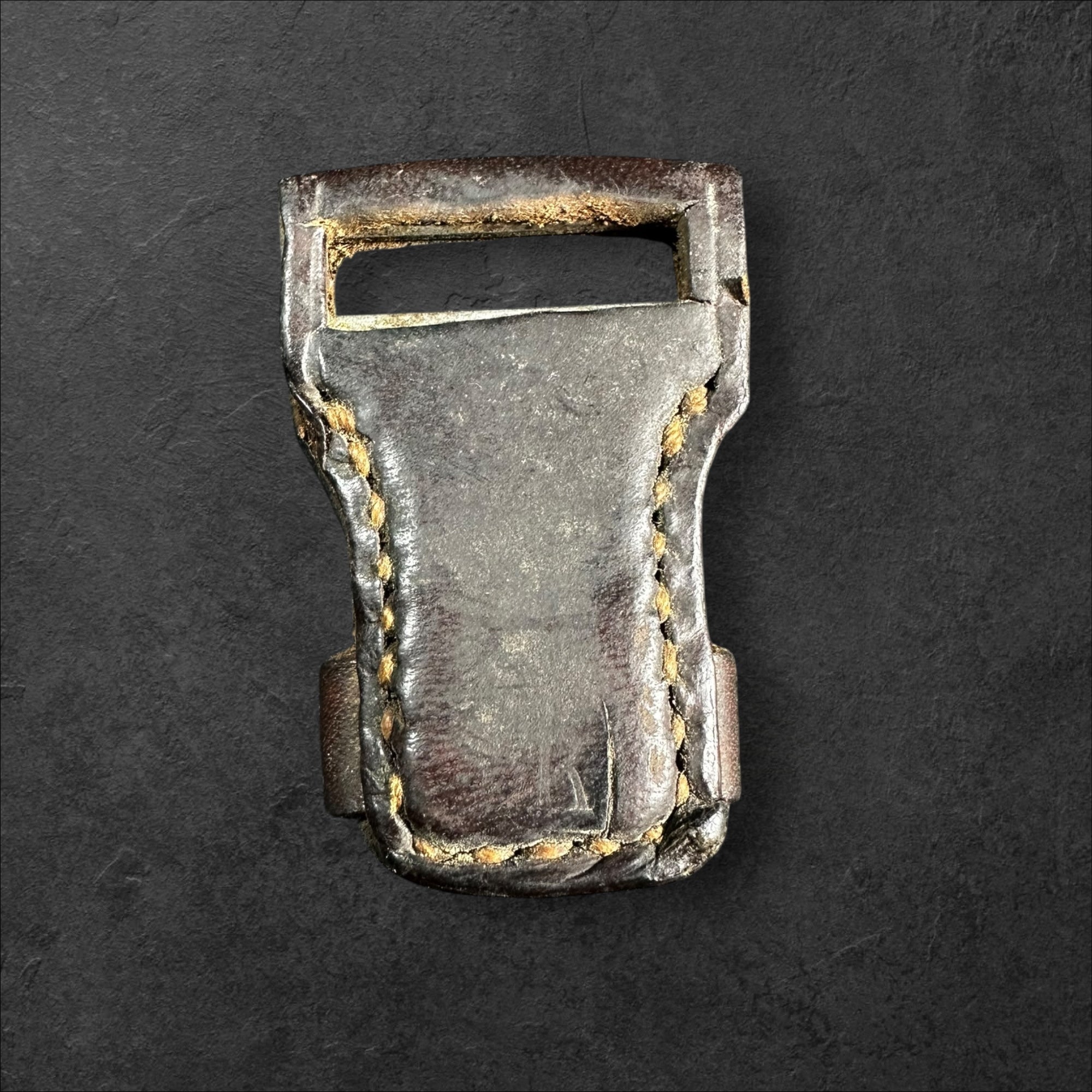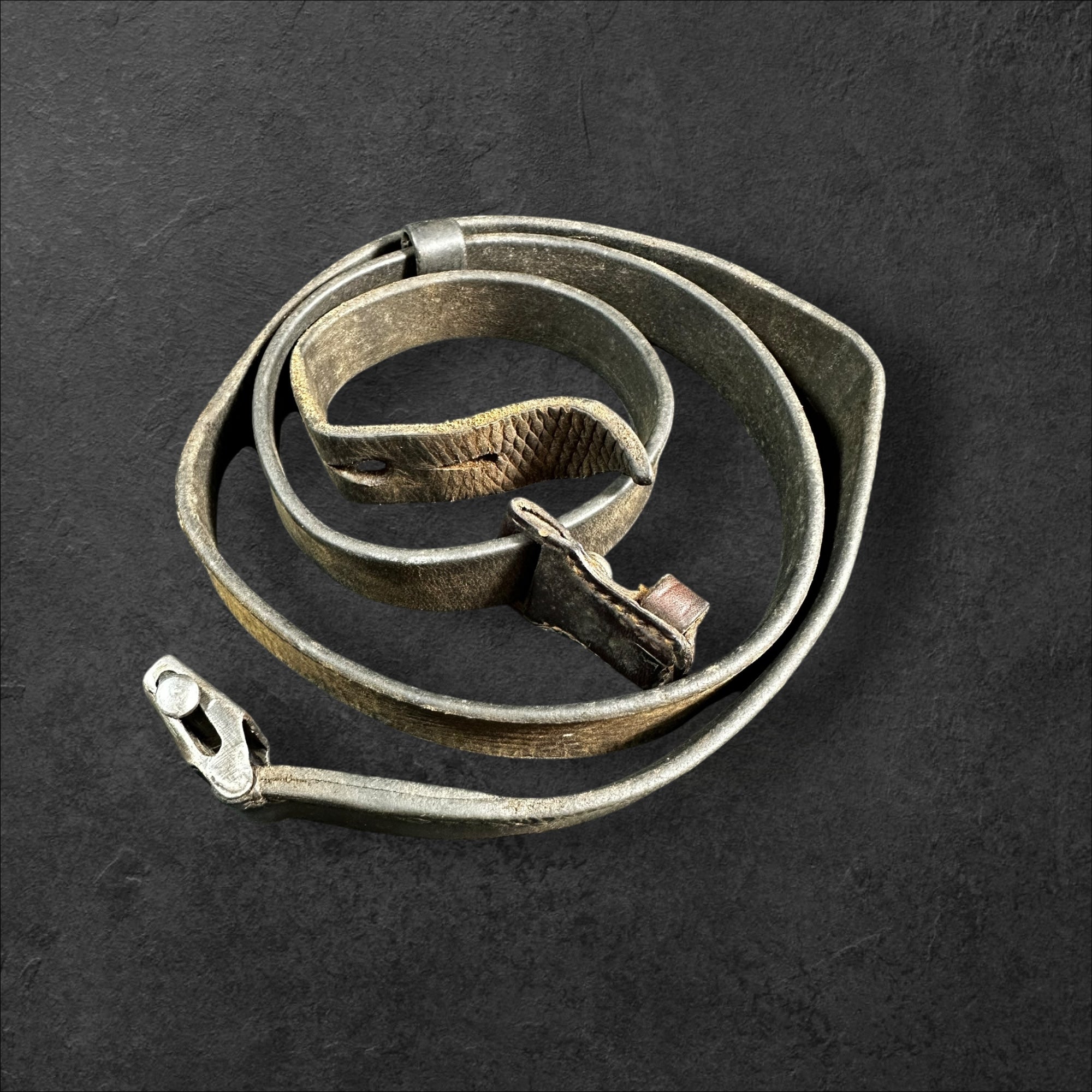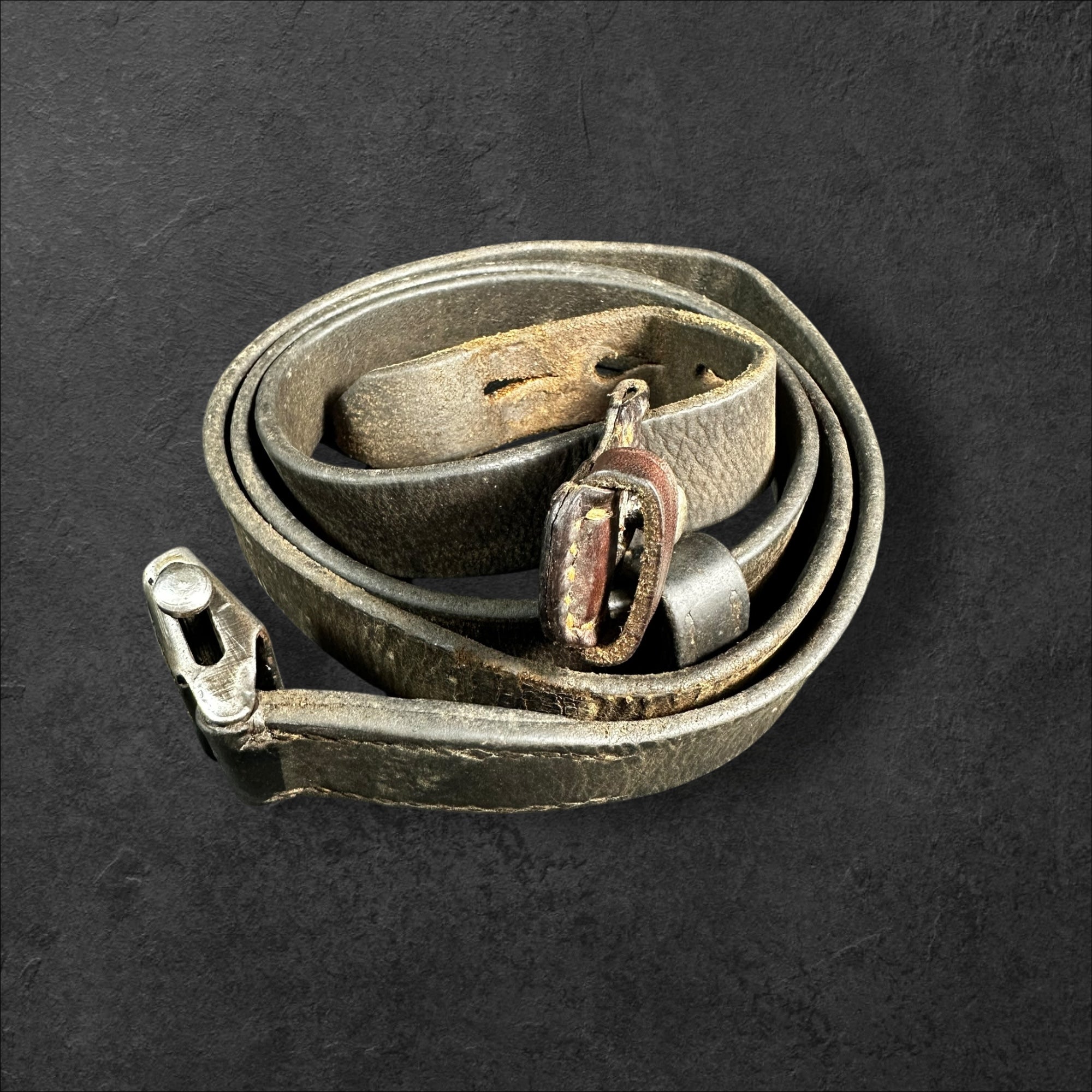Ein ehrlich getragener Riemen für das K98 Gewehr, mit passendem Frosch. Das Leder ist weich und geschmeidig