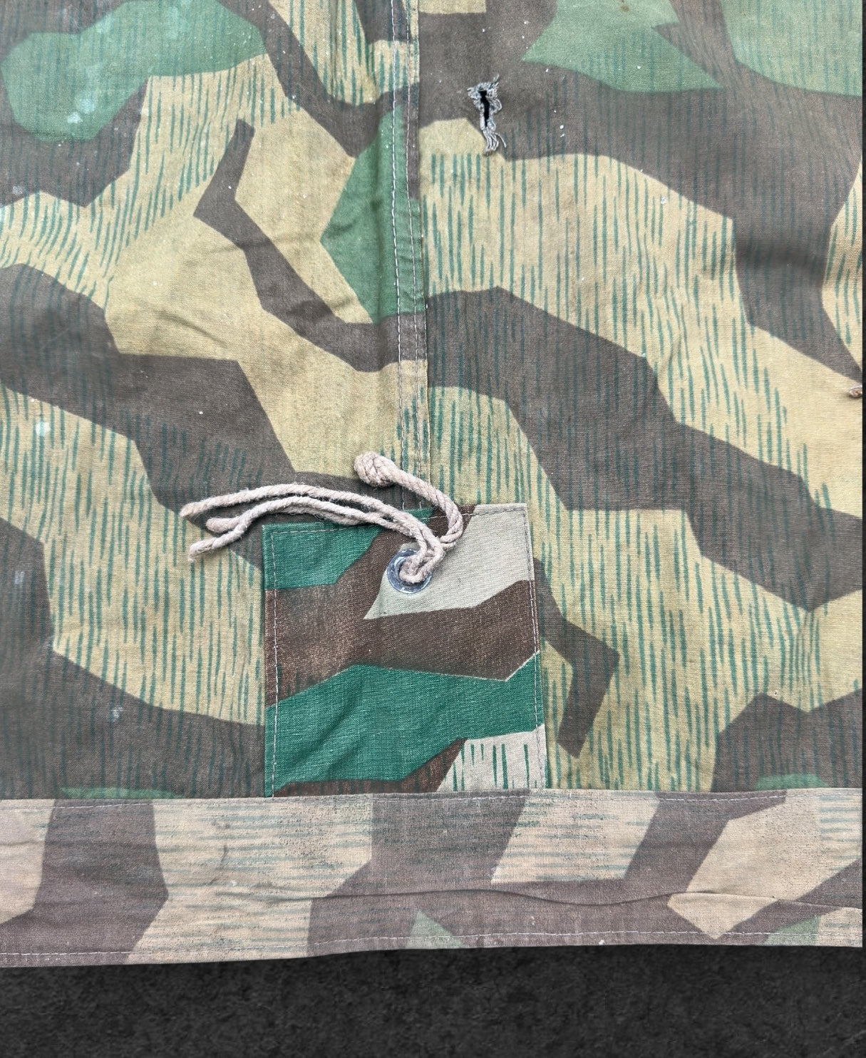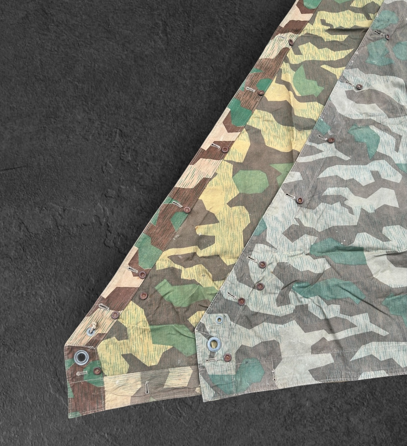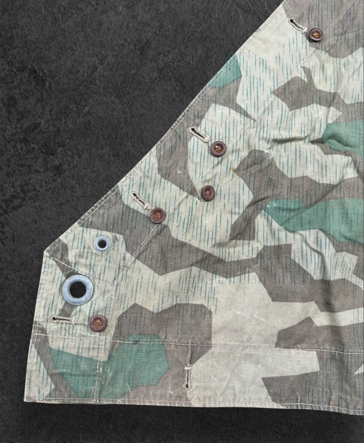 Eine ehrlich genutzte Zeltbahn der Wehrmacht, die Eisenknöpfe allesamt flugrostig. Die Rückseite wirkt fast gelblich, eine interessante Farbgebung